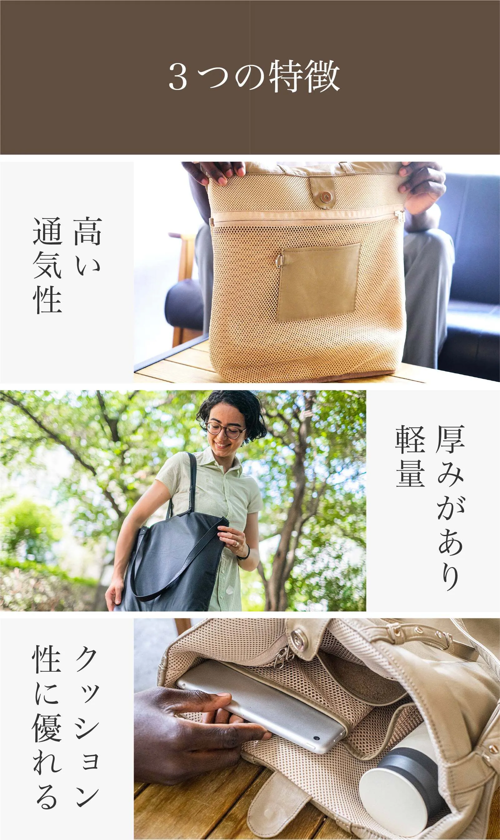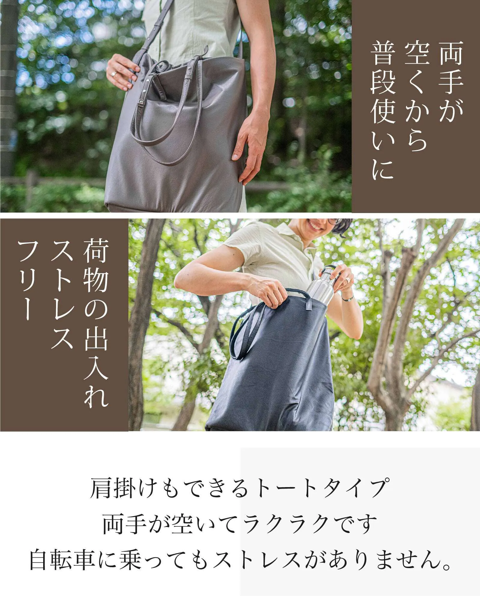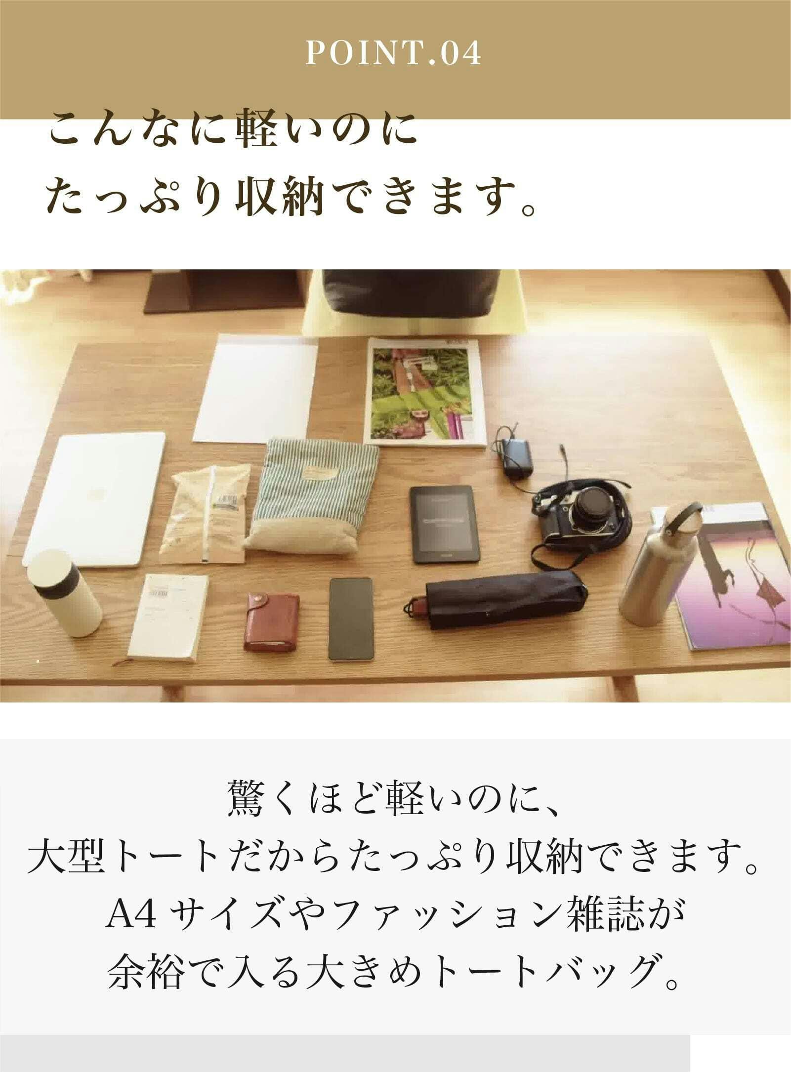 驚くほど軽いのに、大型トートだからたっぷり収納できます。