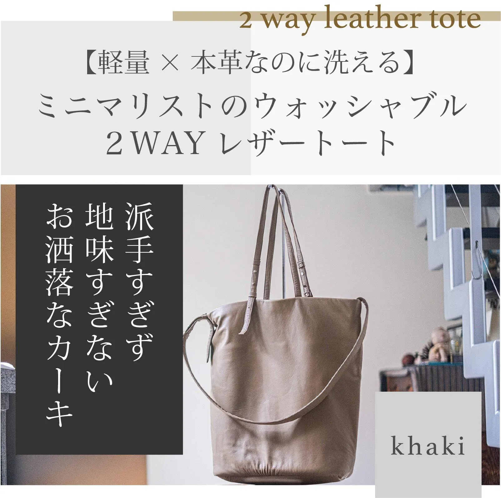 ミニマリストのウォッシャブル2WAYレザートート