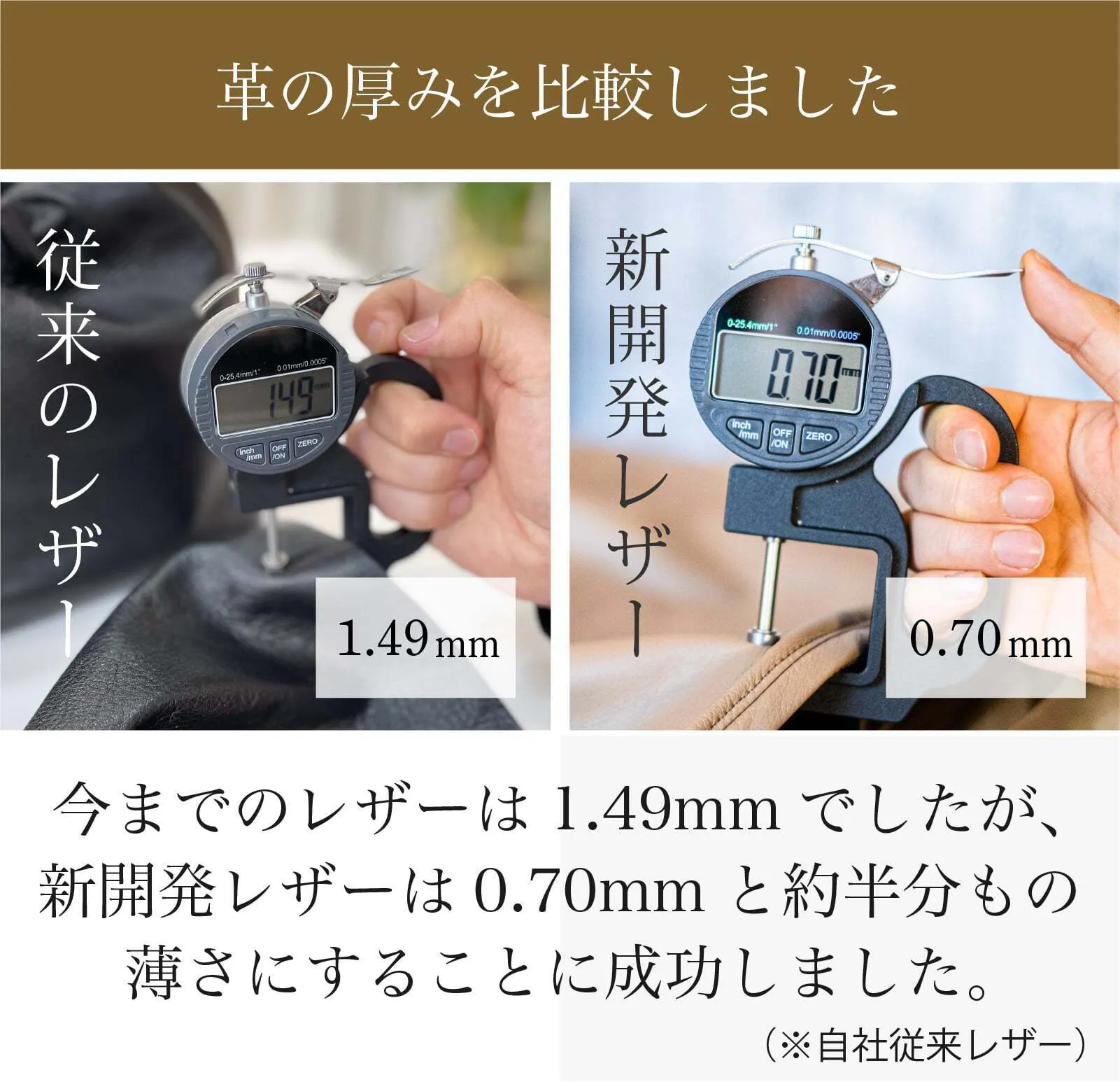 そこで革の厚みを極限まで薄くしながらも強度を保つことに成功しました。