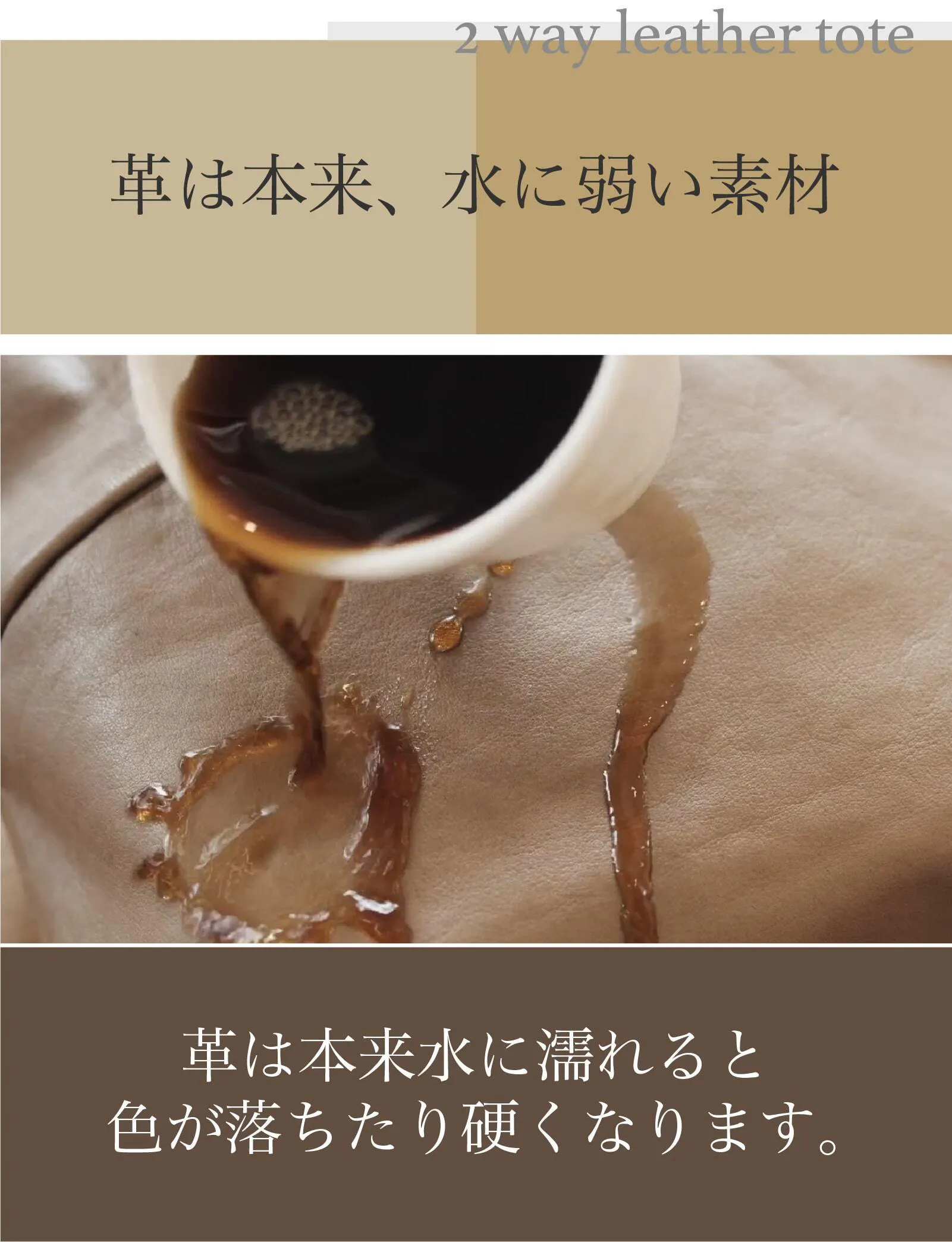 革は本来水に濡れると色が落ちたり、風合いが硬くなったりする水に弱い素材です。