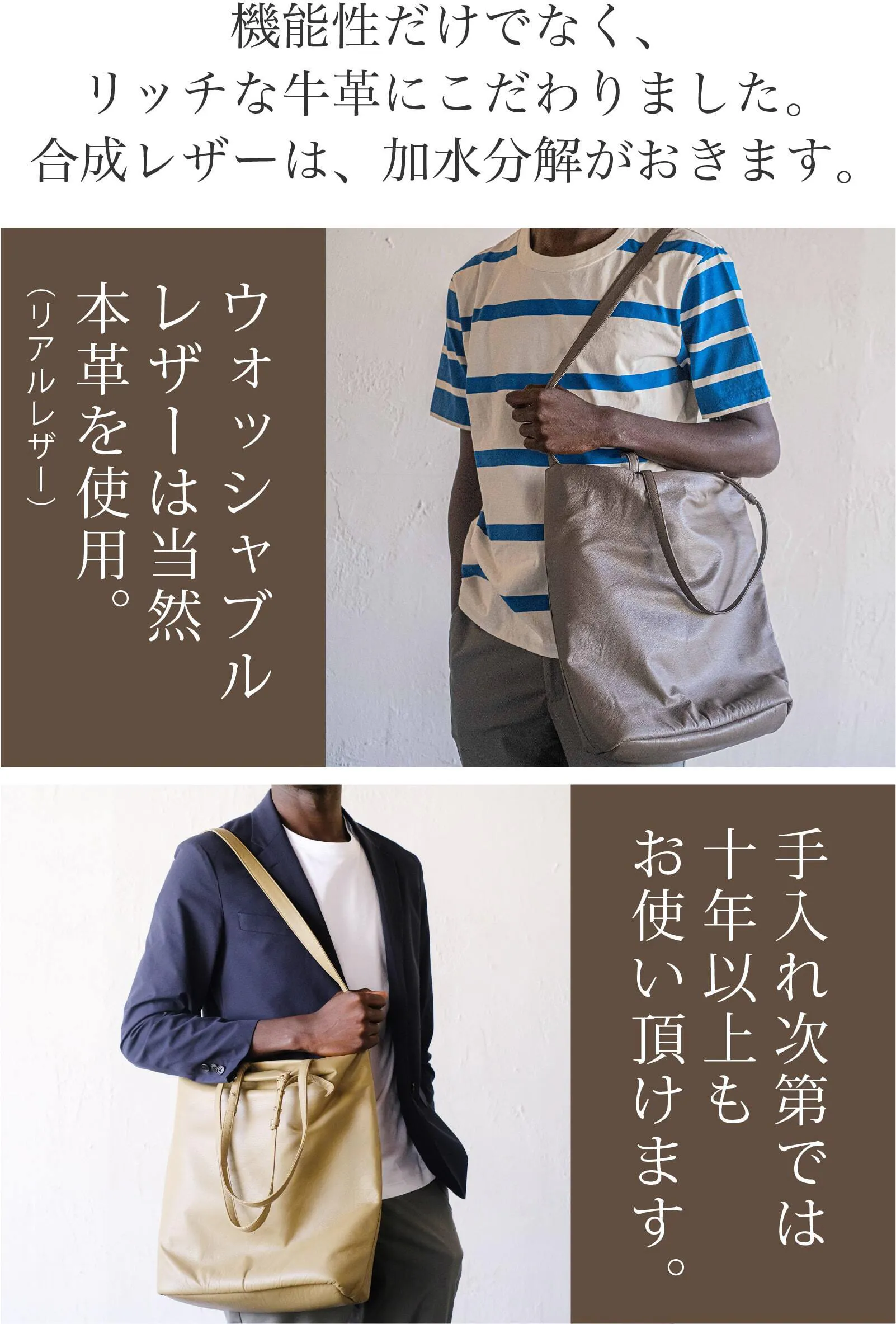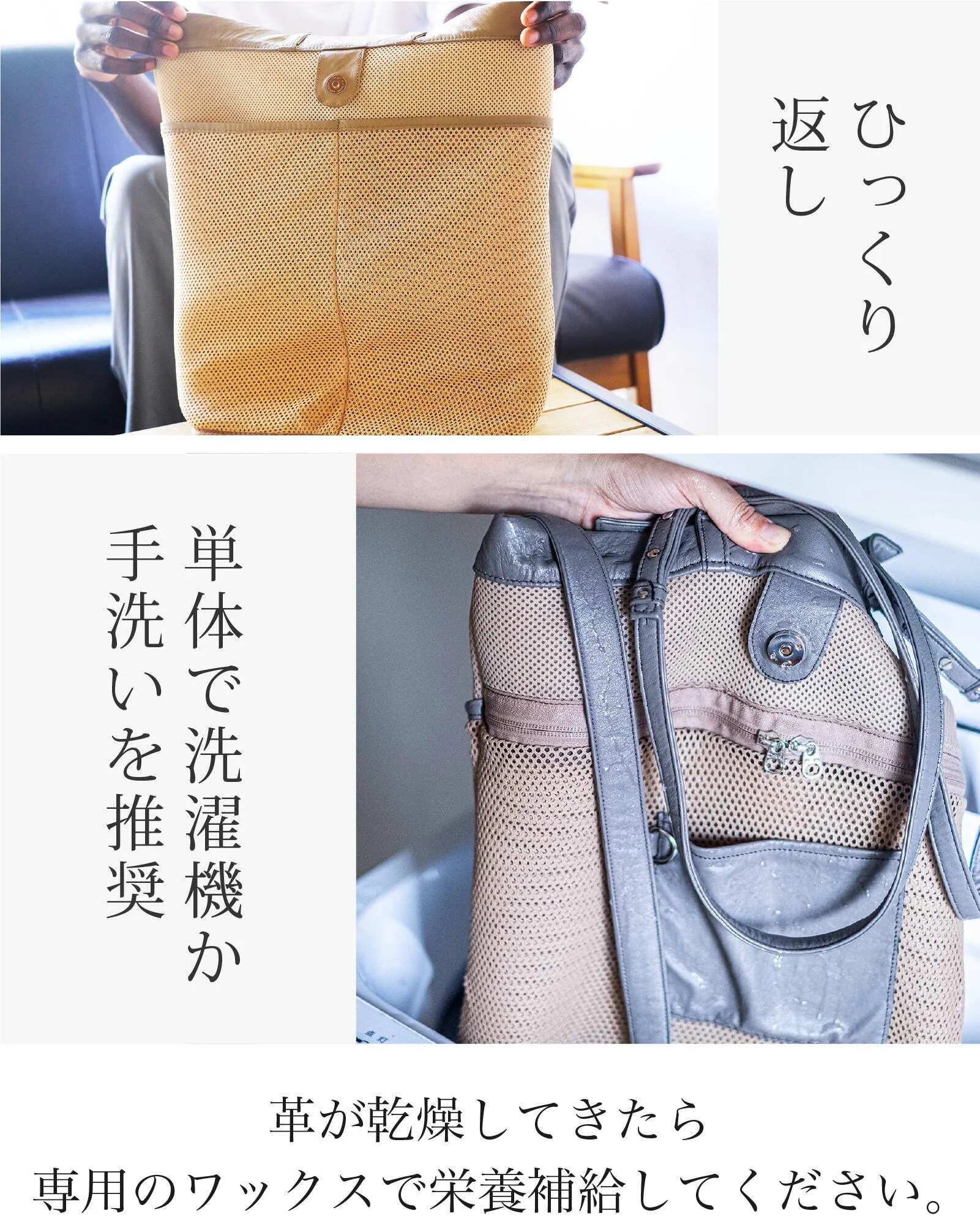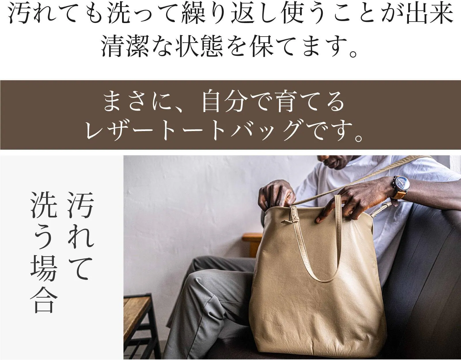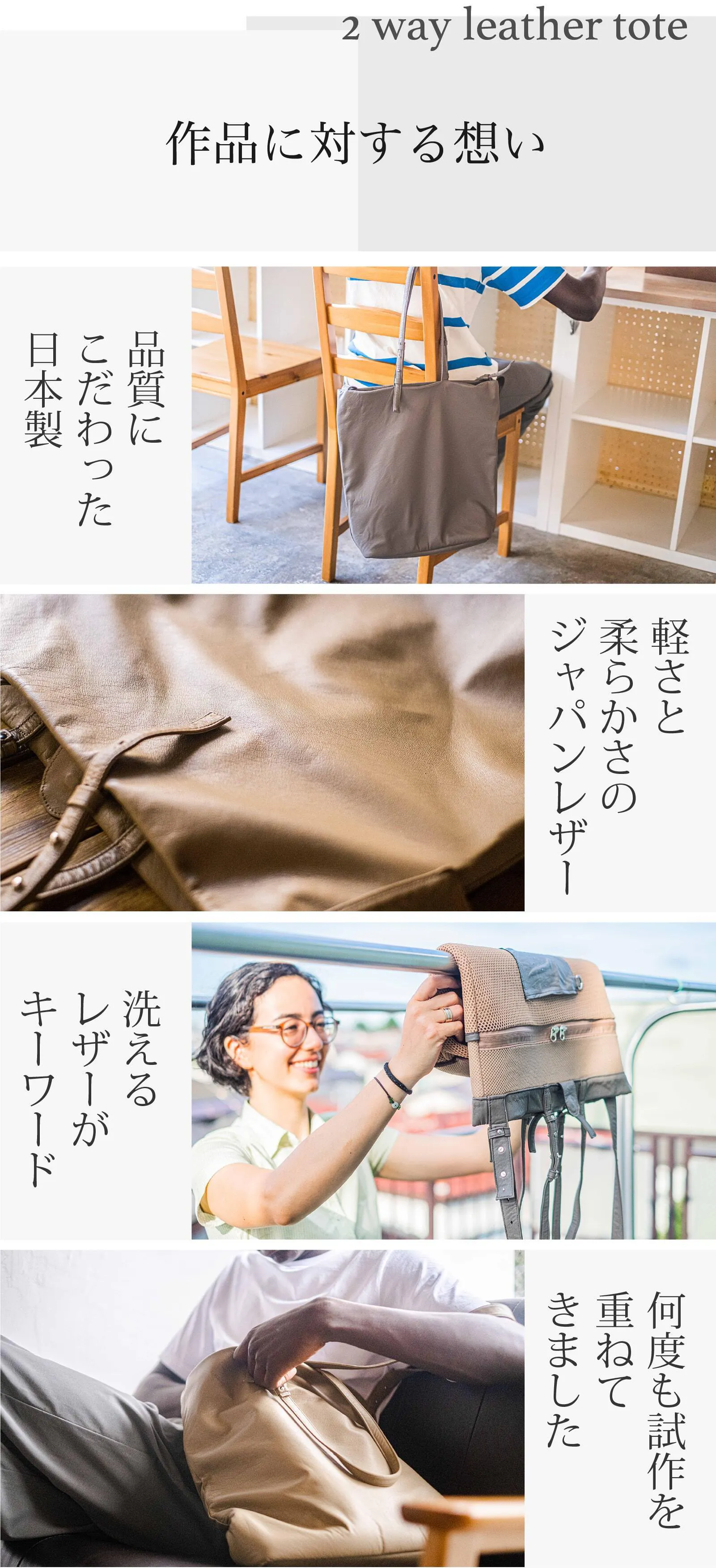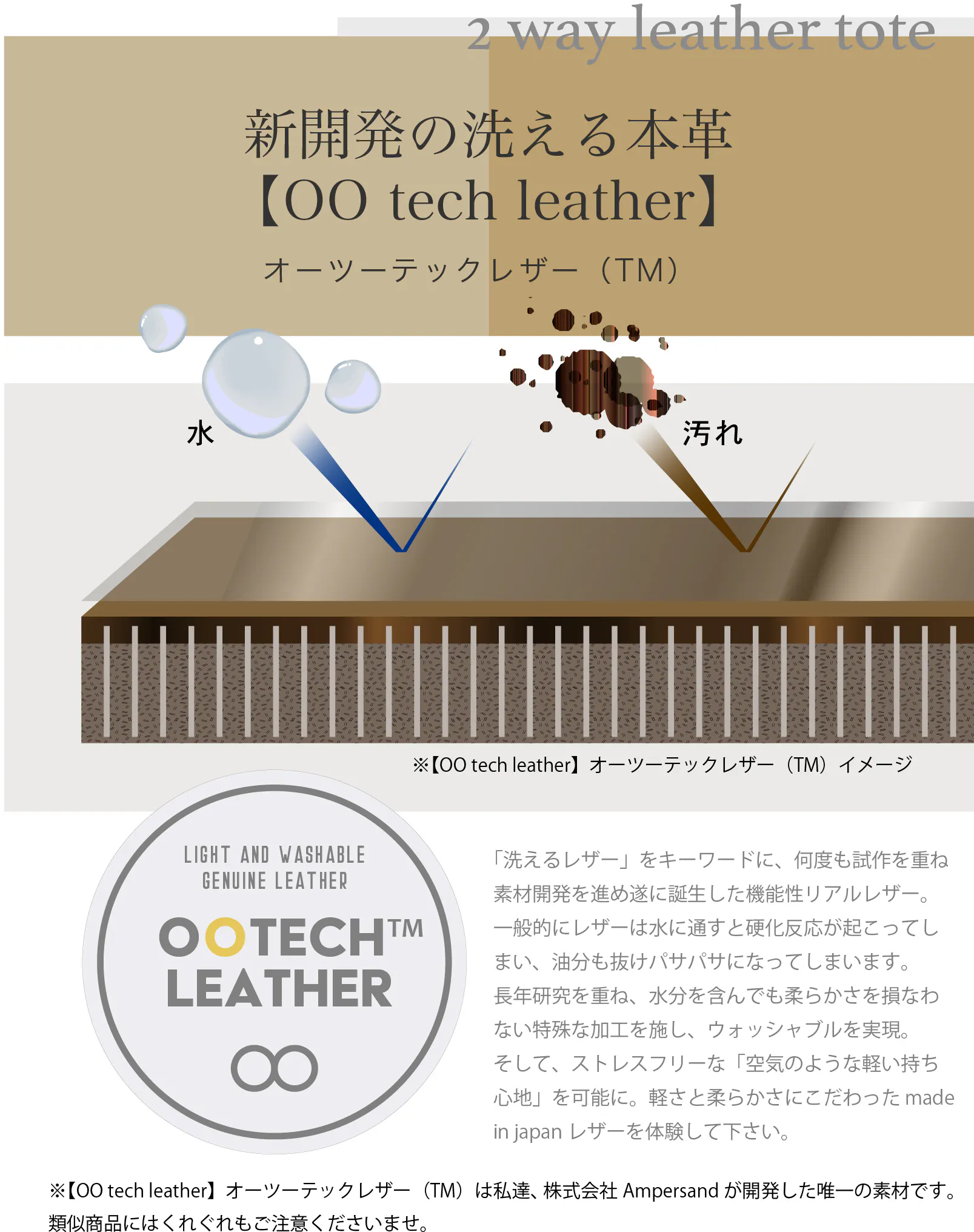 素材からこだわった特別なウォッシャブルレザーを開発することで汚れても洗える!男女兼用できるユニセックスモデルの2WAYトートバッグが誕生です!