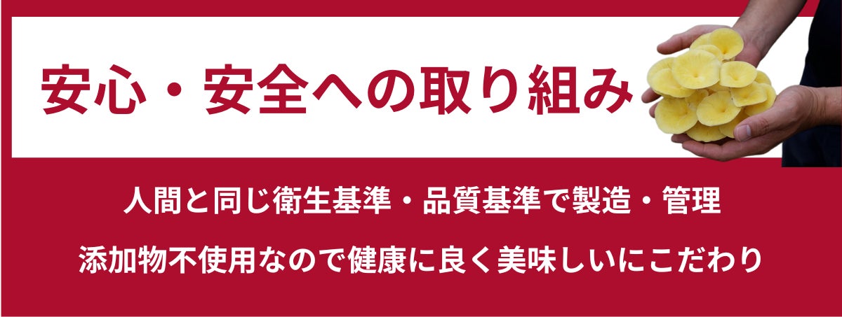 たもぎ茸は自社工場100%国産はもちろん、製造には人間と同じ衛生基準、品質基準を適用。