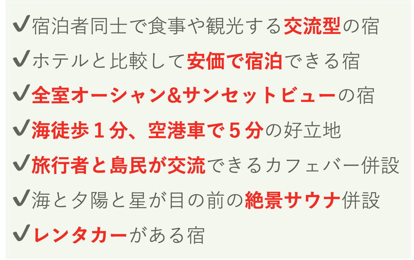 目的としては上記の3点です。宮古島・伊良部島には多くの宿泊施設があります。