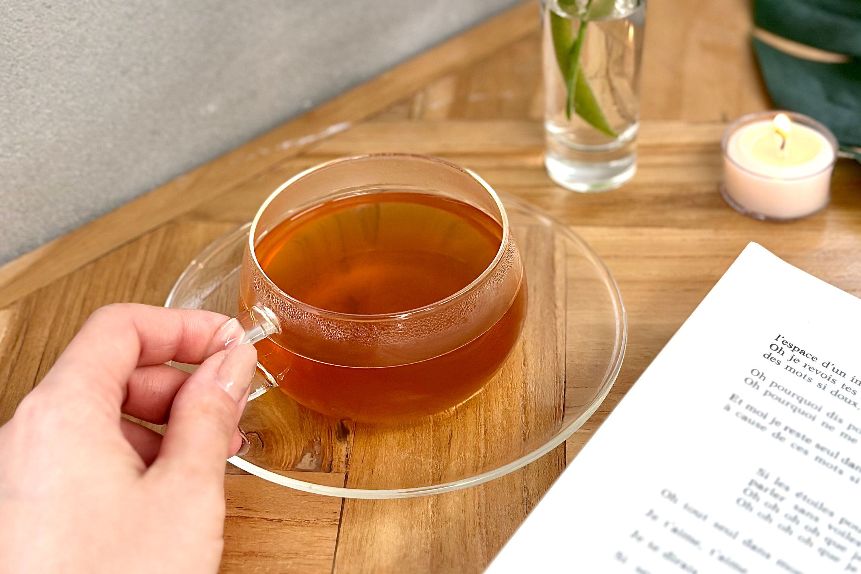 そういえば、こうして悩んでいるときも、ぼんやり考えごとをしているときも、休んでリラックスしているときも、いつも手元にはお茶があるなあと。