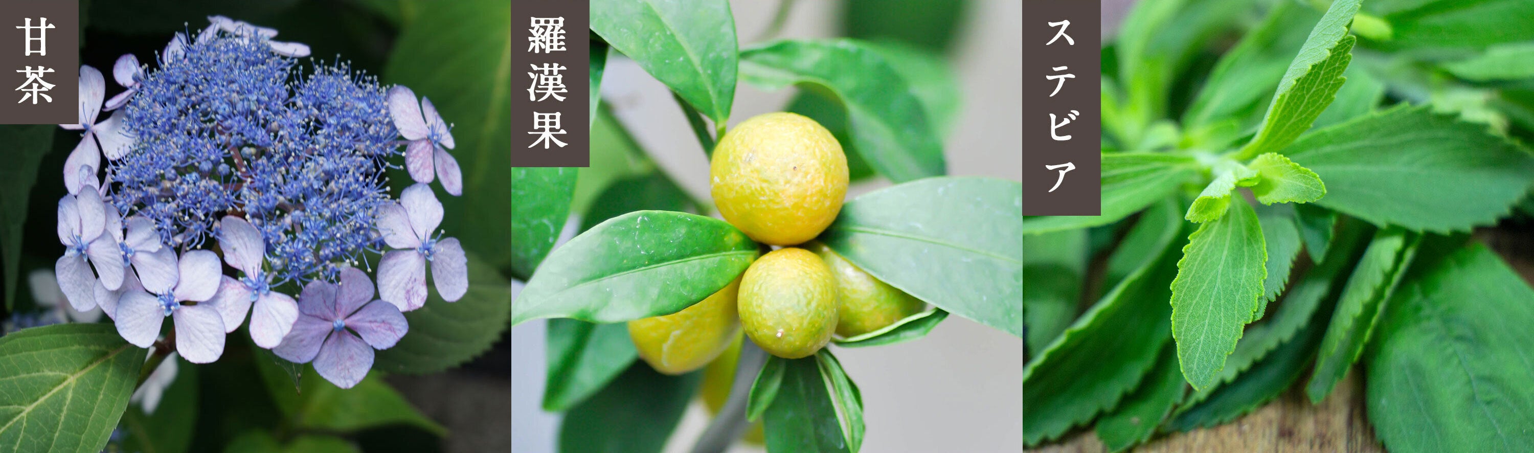しっかりとした甘みの中に天然の優しさを感じていただきたく、甘茶(アマチャ)や羅漢果(ラカンカ)、ステビアをブレンドしてコクのある甘さを付けました。