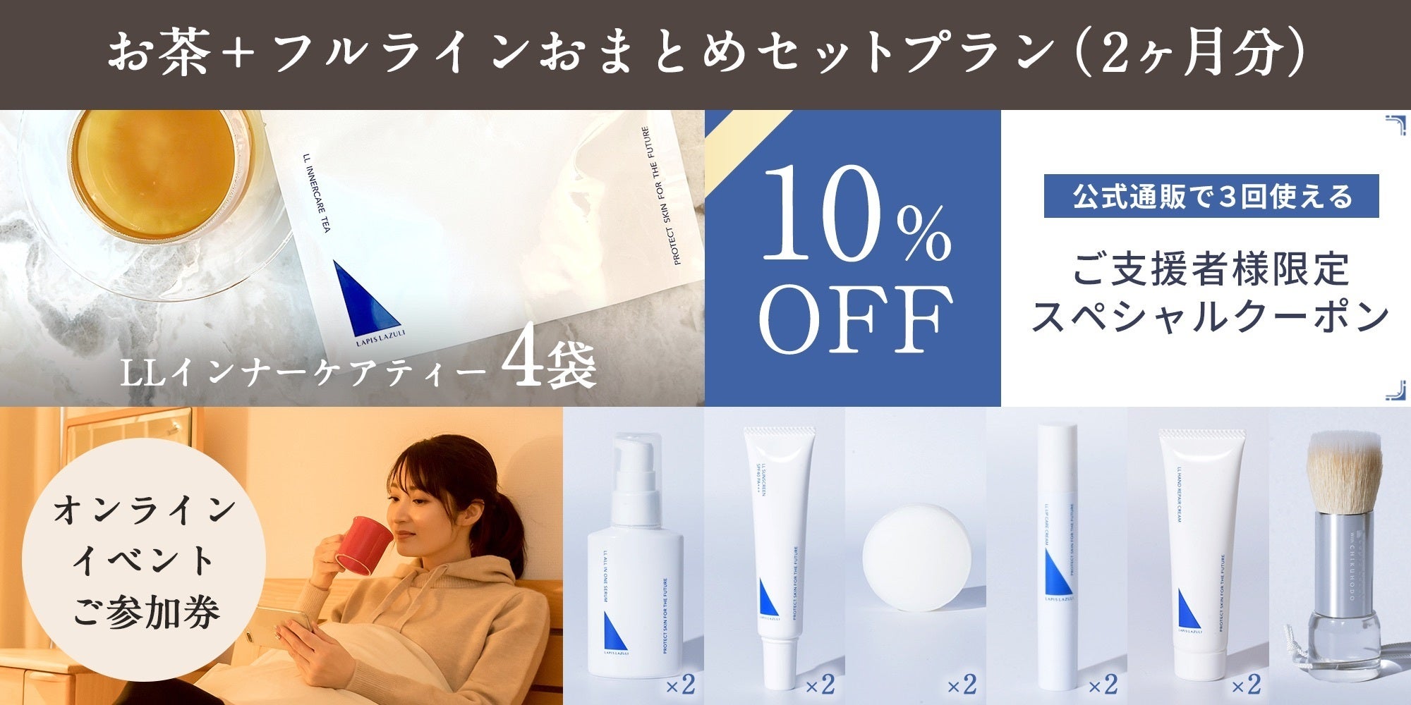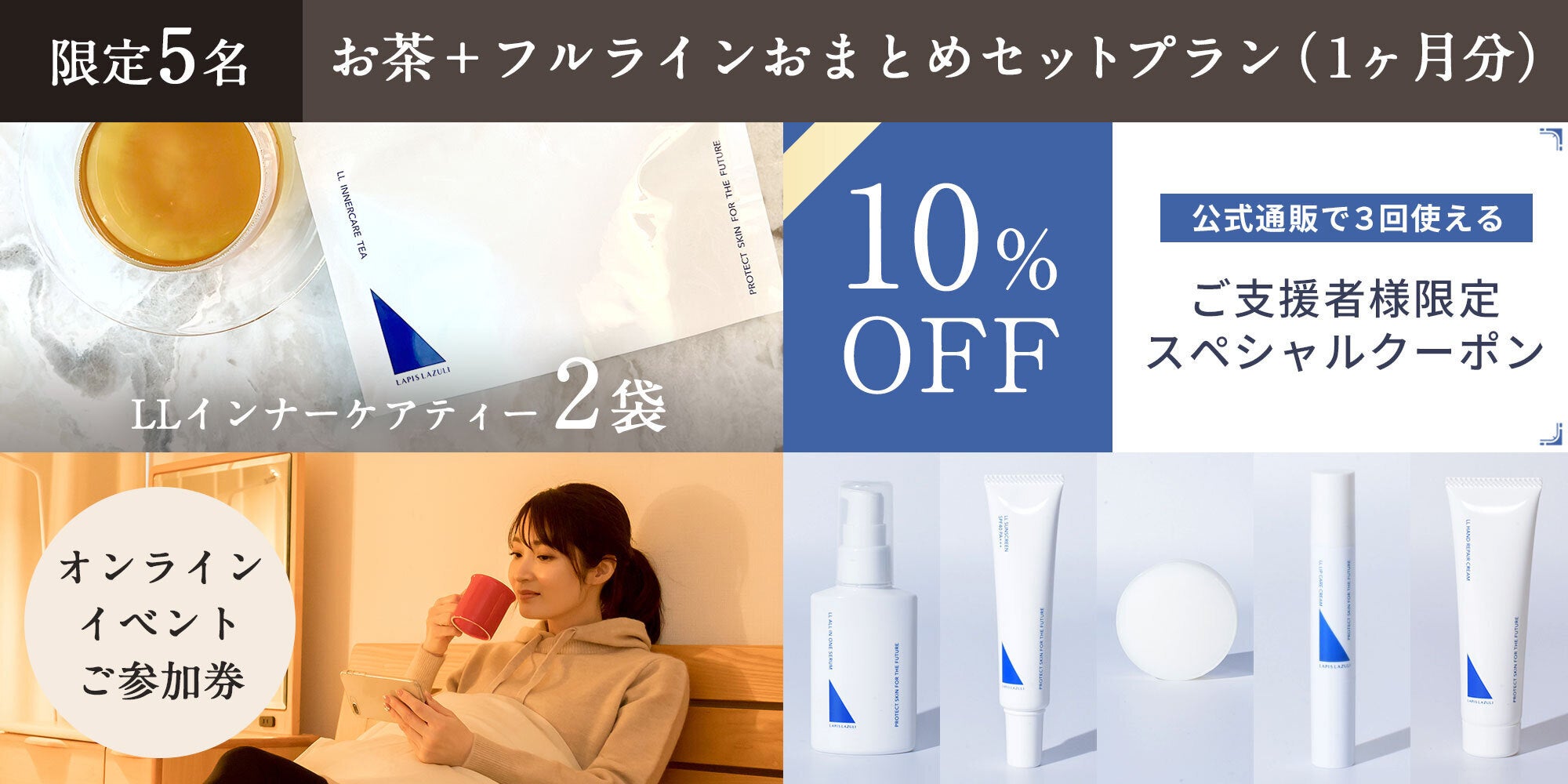 より多くの皆さまにラピスラズリを知っていただきたいという想いから、LLインナーケアティーだけでなくスキンケアラインを含め様々なリターンをご用意!