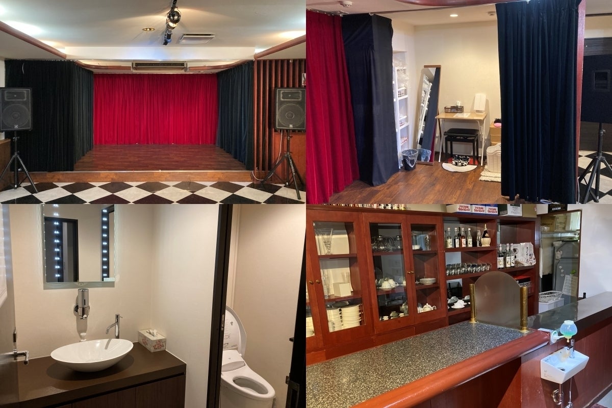 店内にはステージ、楽屋があり、着席で40名を収容できるフロアがあります。小規模トークイベントの開催には最適です。