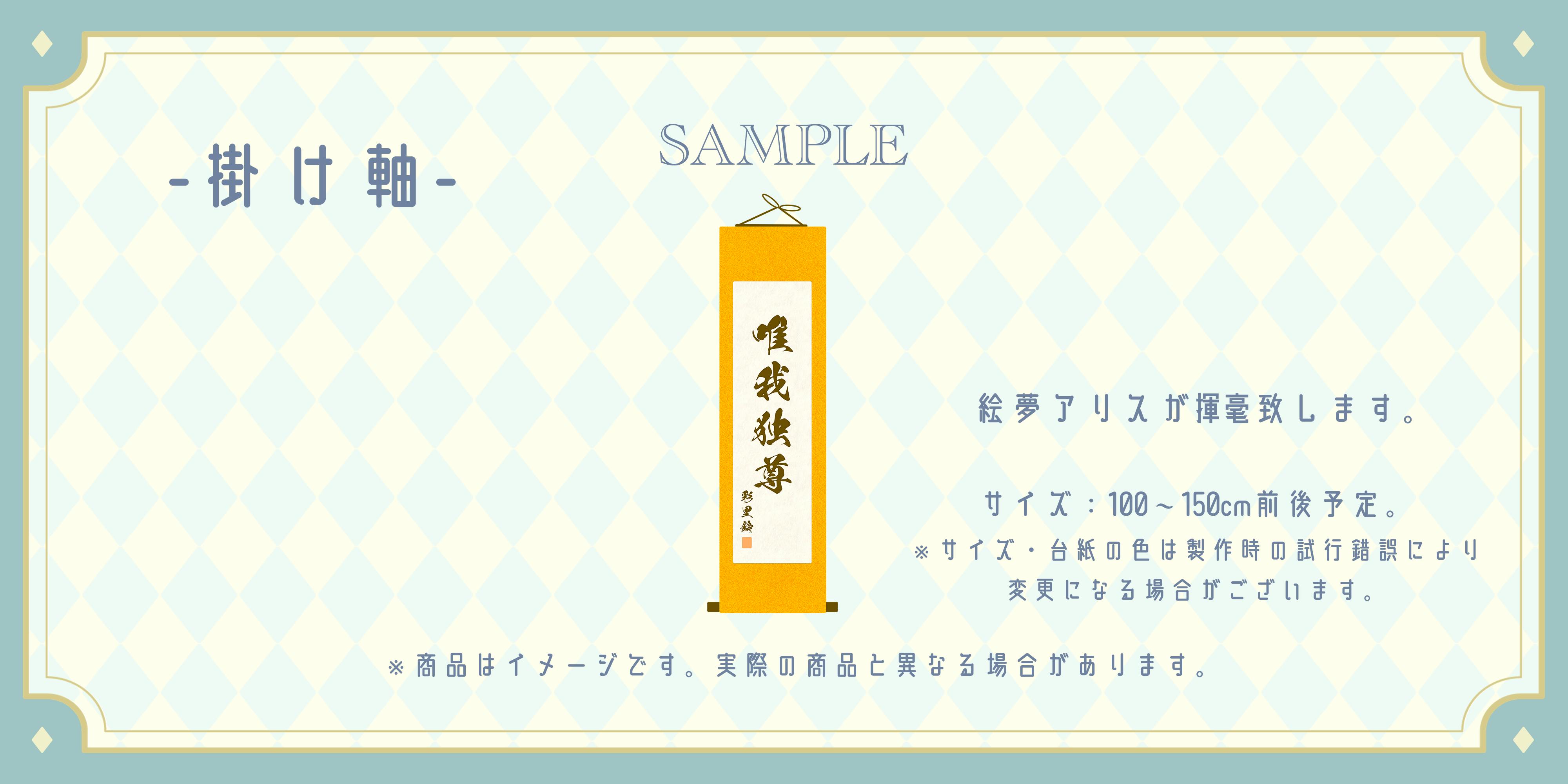 アリス自身が「唯我独尊」と直筆で揮毫した掛け軸をお送り致します。