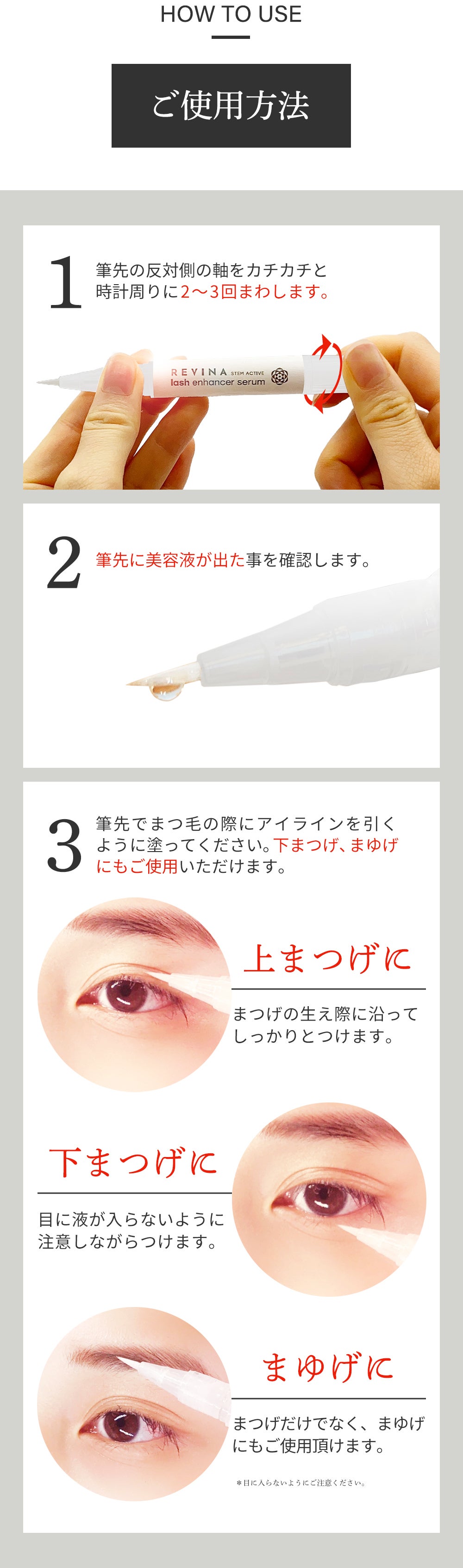 ・美容液が目に入らないようにし注意してください。