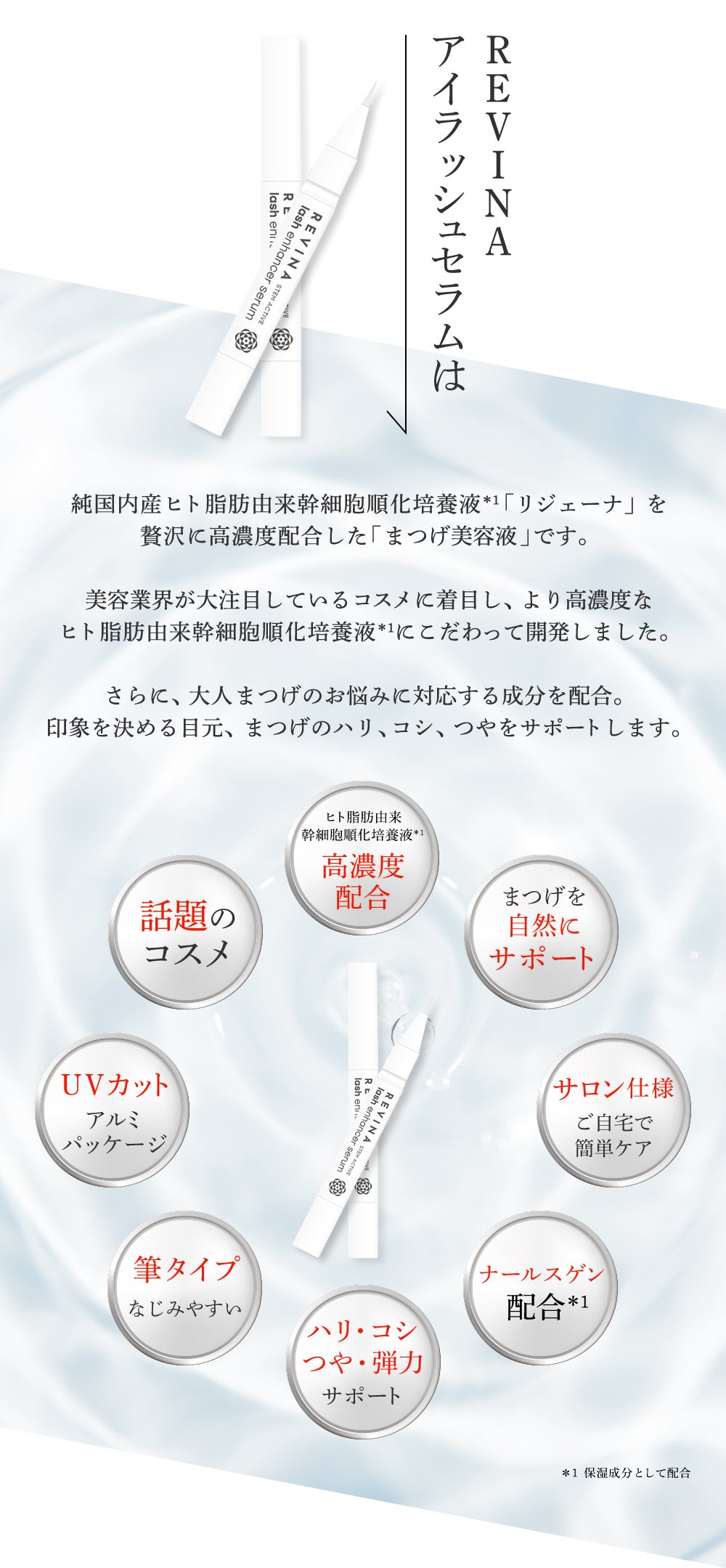 1. さっと塗るだけ!サロン品質!純国内産ヒト脂肪由来幹細胞順化培養液*を高濃度配合したまつげ美容液