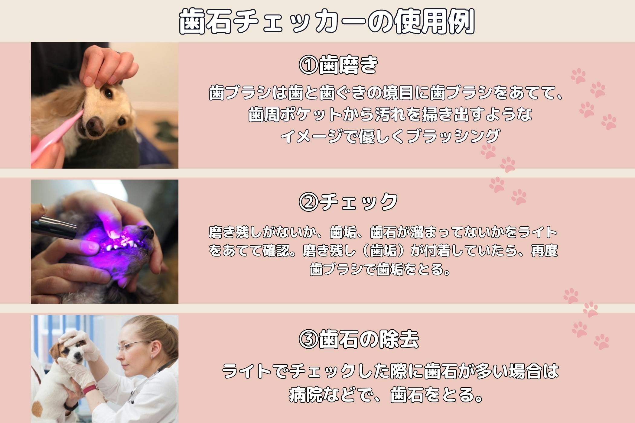 そこで日常のデンタルケアの習慣にこちらのペット用歯石チェッカーも是非取り入れていただきたいです。