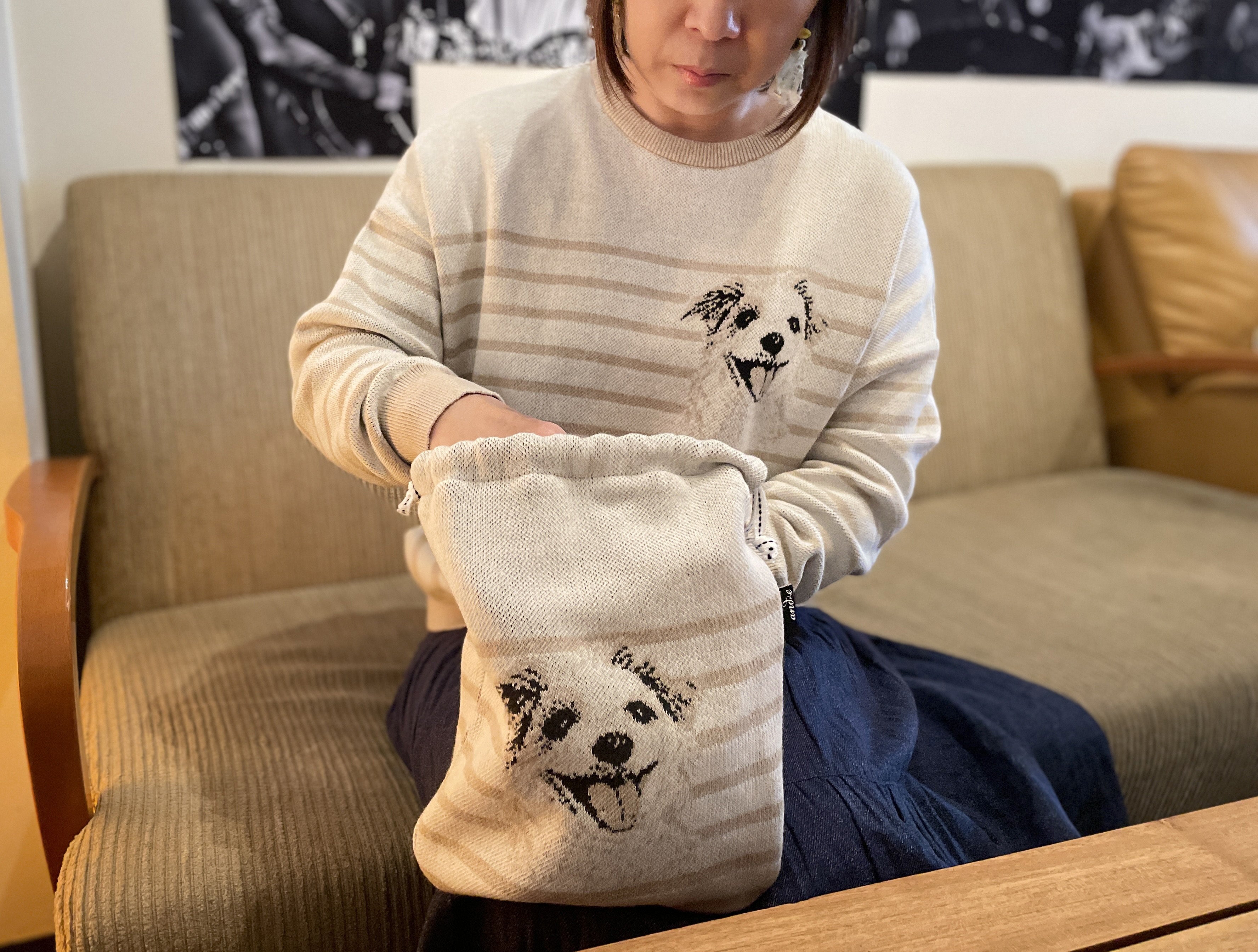 うちの子柄になった巾着付きのセットリターン品もご用意しました