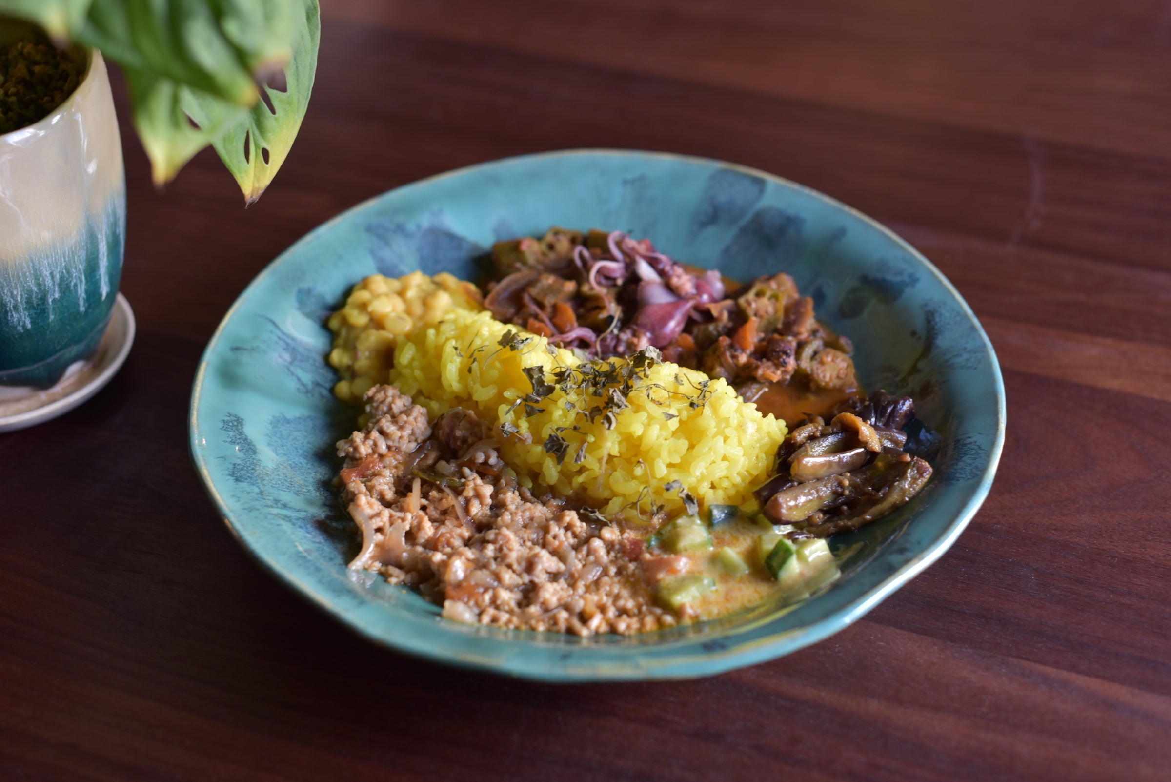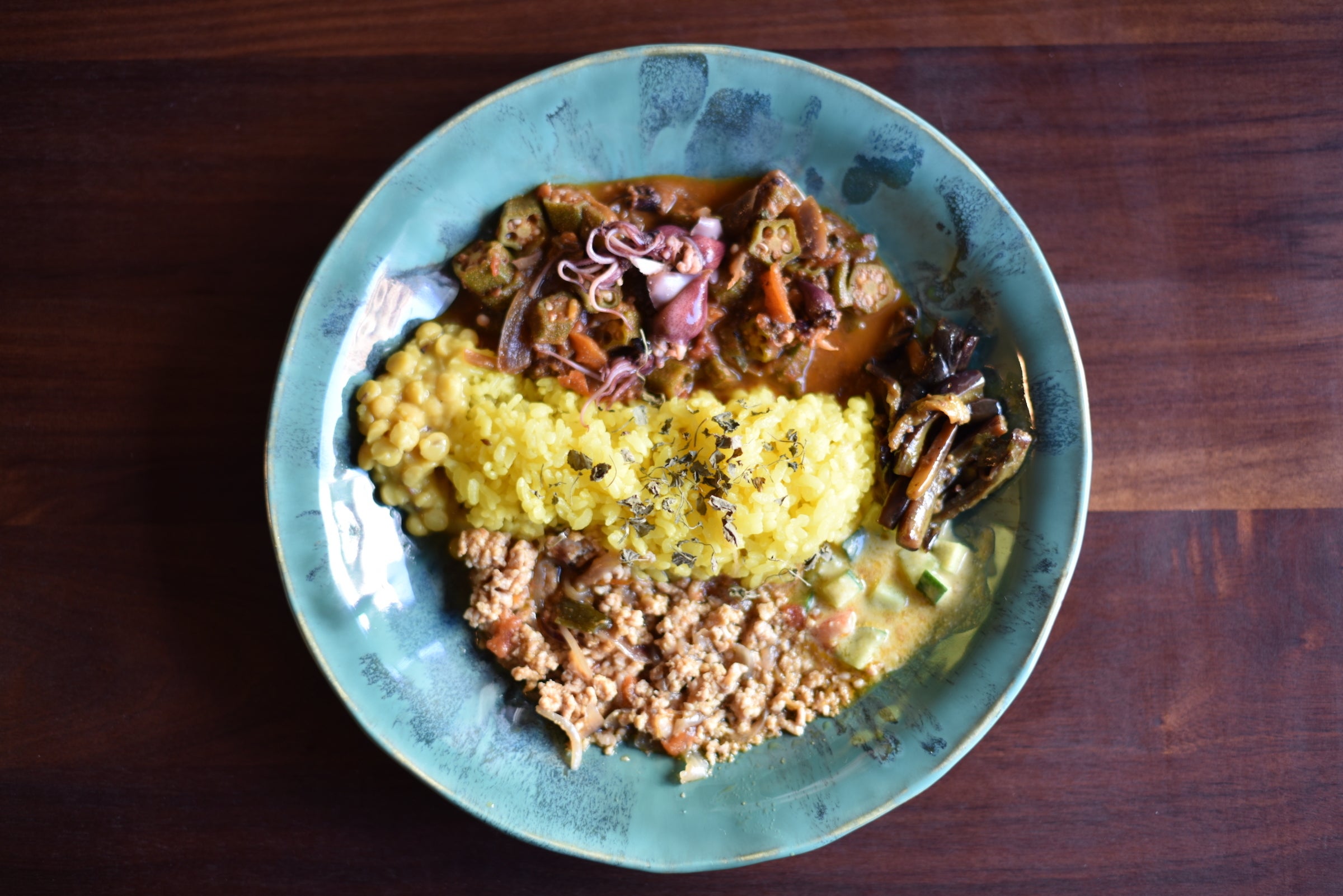 スリランカカレーをベースとした数種のスパイスカレー(月替りメニューあり)