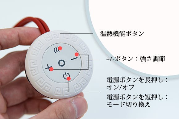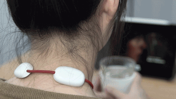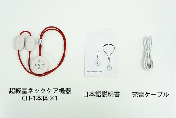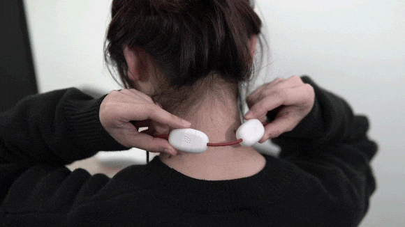 CH-1の操作はとても簡単です。首にかけて、電極パッドを首にぴったりフィットさせ、電源ボタンを押すと3秒で刺激を感じます。