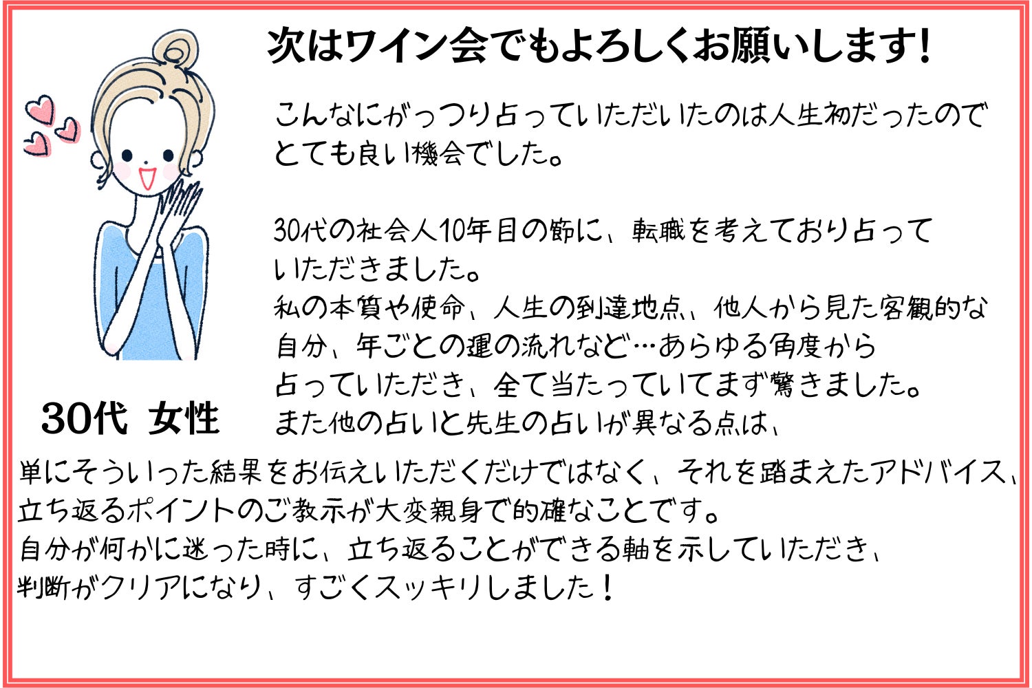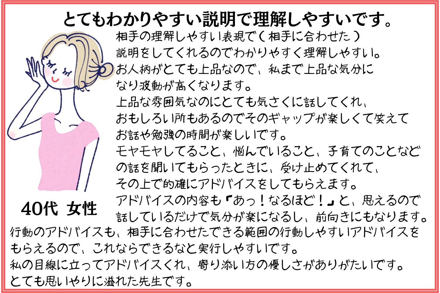また「ストアカ」以外にも、NLPを始めとした心理学や魔法の質問を取り入れた占い鑑定を、働く女性や起業予定のある方、起業した方など累計1000人以上のお客さまに実施させていただき、「まるでコーチングを受けているよう」と嬉しいお声をいただいています。