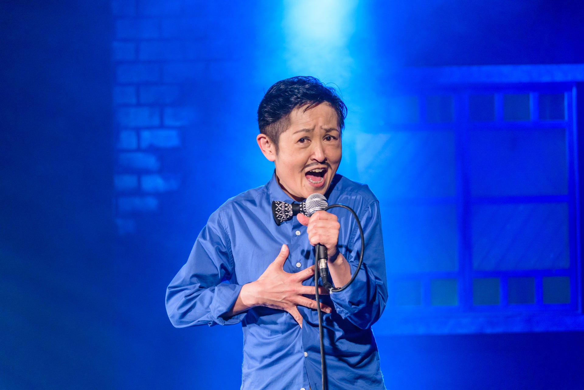 劇団の公演では芝居のみならず毎回私の歌声で芝居に『花』ではなく『パンチ』を添えております。