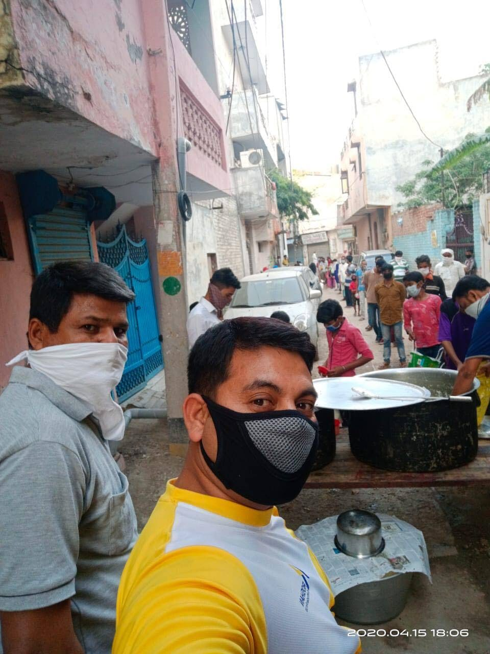 (温かいカレーを作って500人分配布)