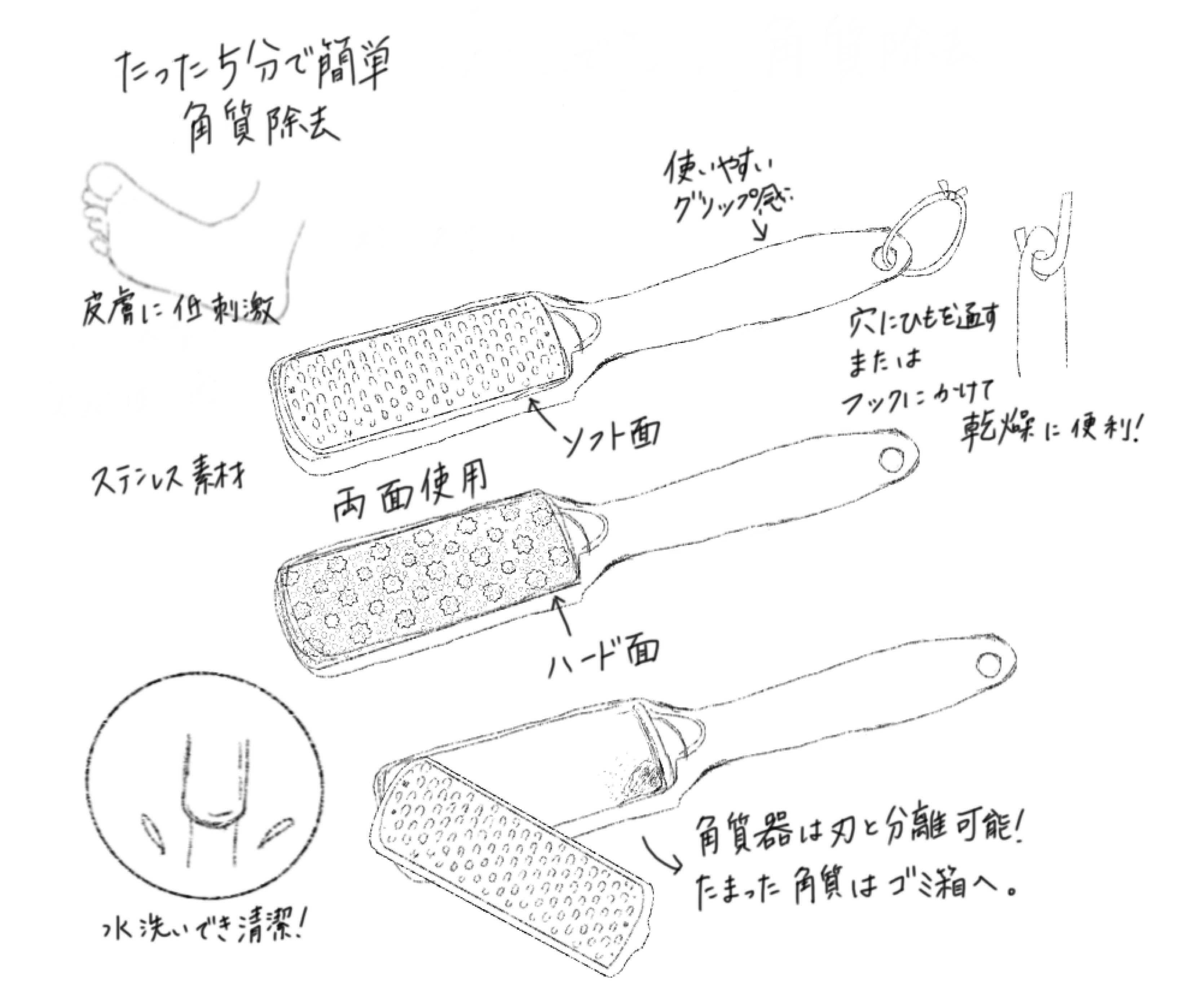 両面フットリムーバーで多くの方々が足の角質から解放されることを願っています。 どうぞよろしくお願いします。