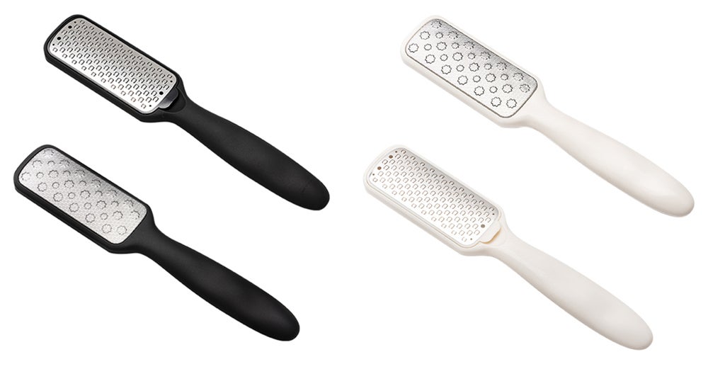両面フットリムーバーは角質の厚み具合に応じて両面2種類に角質を一度に除去できます。突起パターンバッファ面でまず角質を除去した後、マイクロシャープニング刃面で整理するという弱い力で繰り返すと足の表面を滑らかにします。