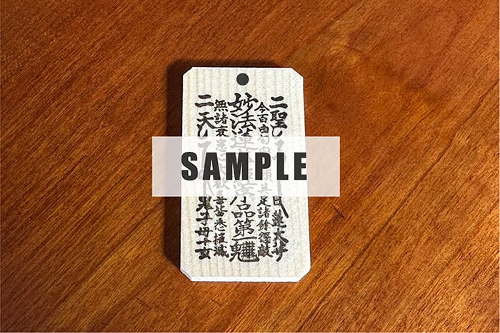本堂の古材を使った首下げお守りをお送りさせていただきます。