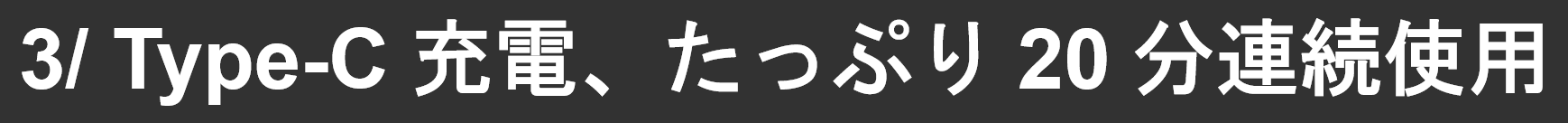 AM23の充電は簡単です。本体背面部にあるUSB Type-Cポートを使用します。5V/2Aの入力があれば、約2~3時間でフル充電できます。