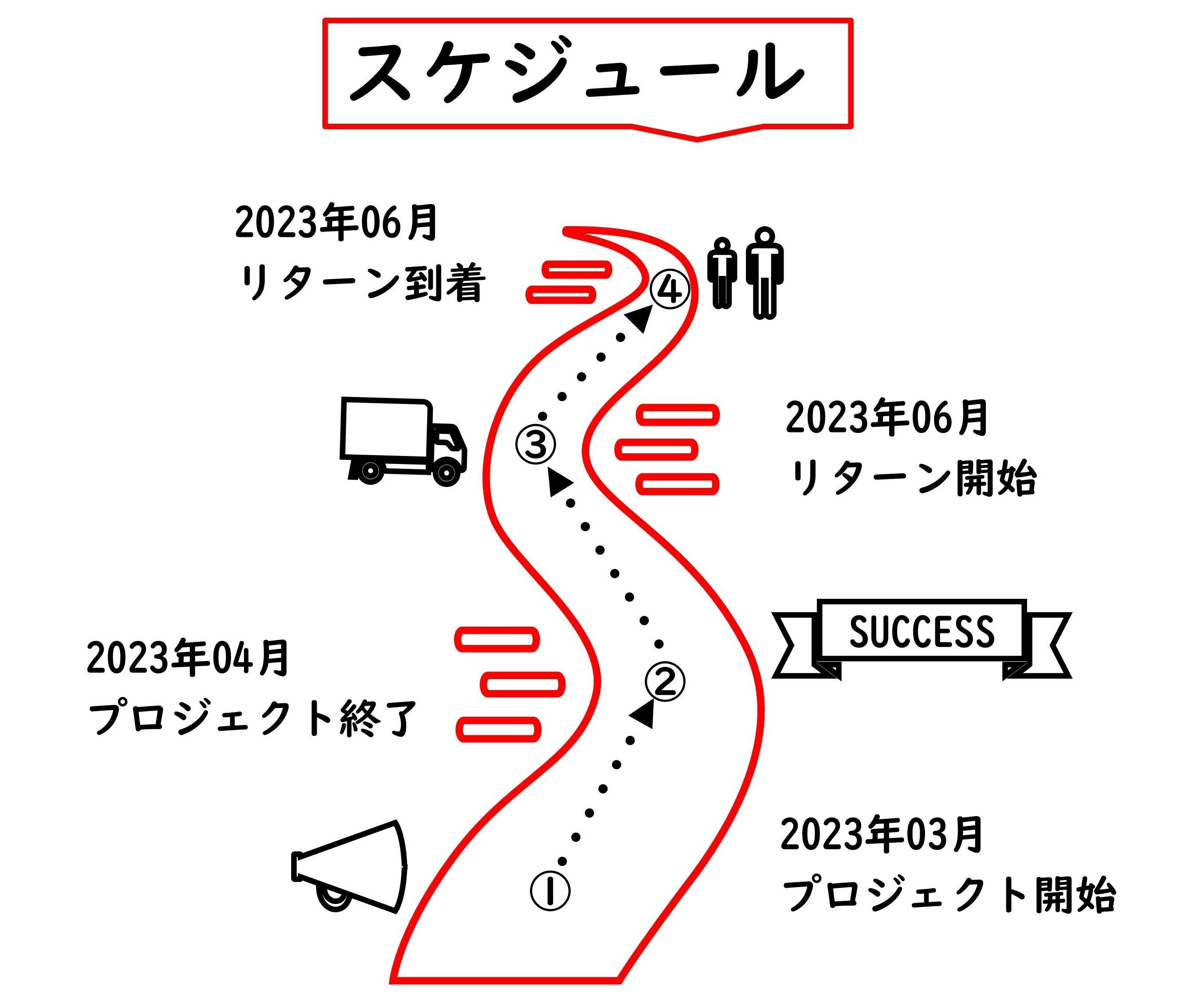 ※本文中に記載させていただいたスケジュールは、あくまでプロジェクト公開時点の予定です。支援購入の性質上、配送遅延のおそれがございます。