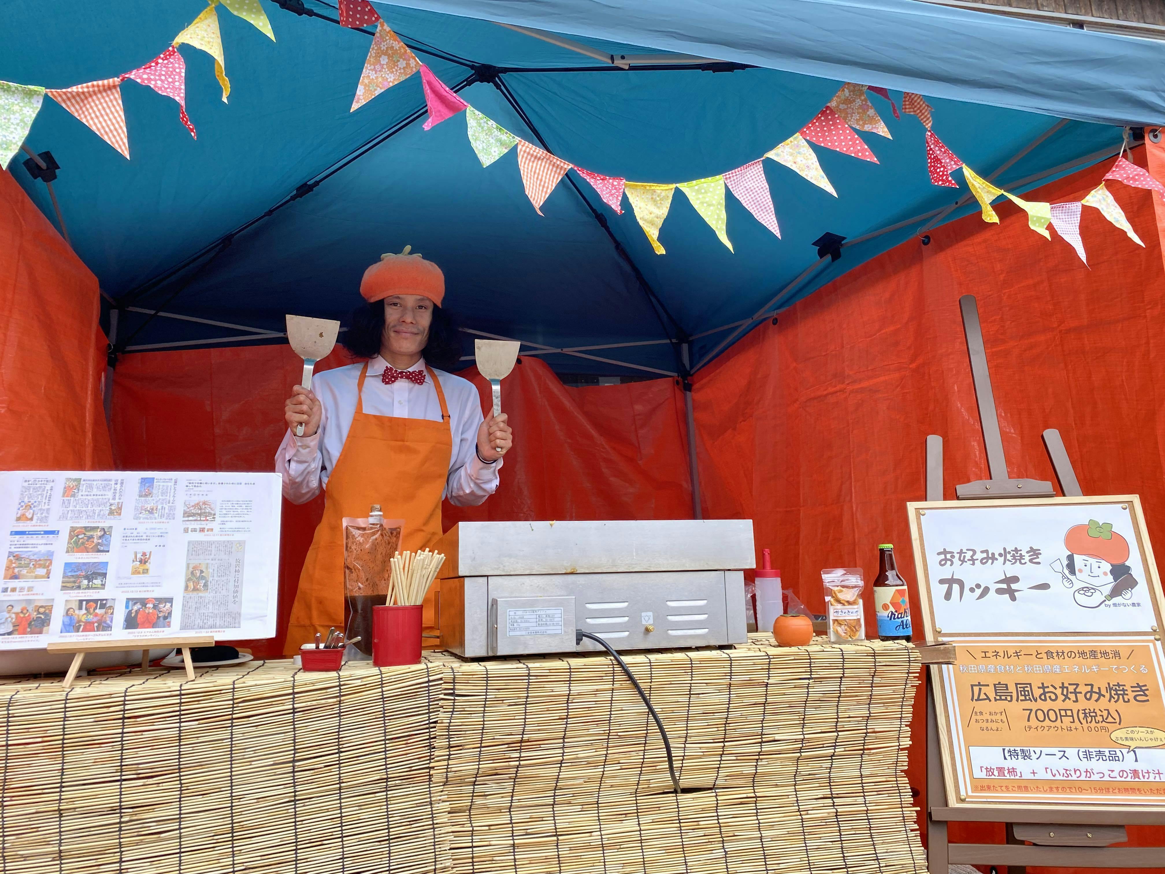 「エネルギーと食材の地産地消」をテーマに、柿のお兄さんこと噂のカッキーが広島風のお好み焼き屋を出店!