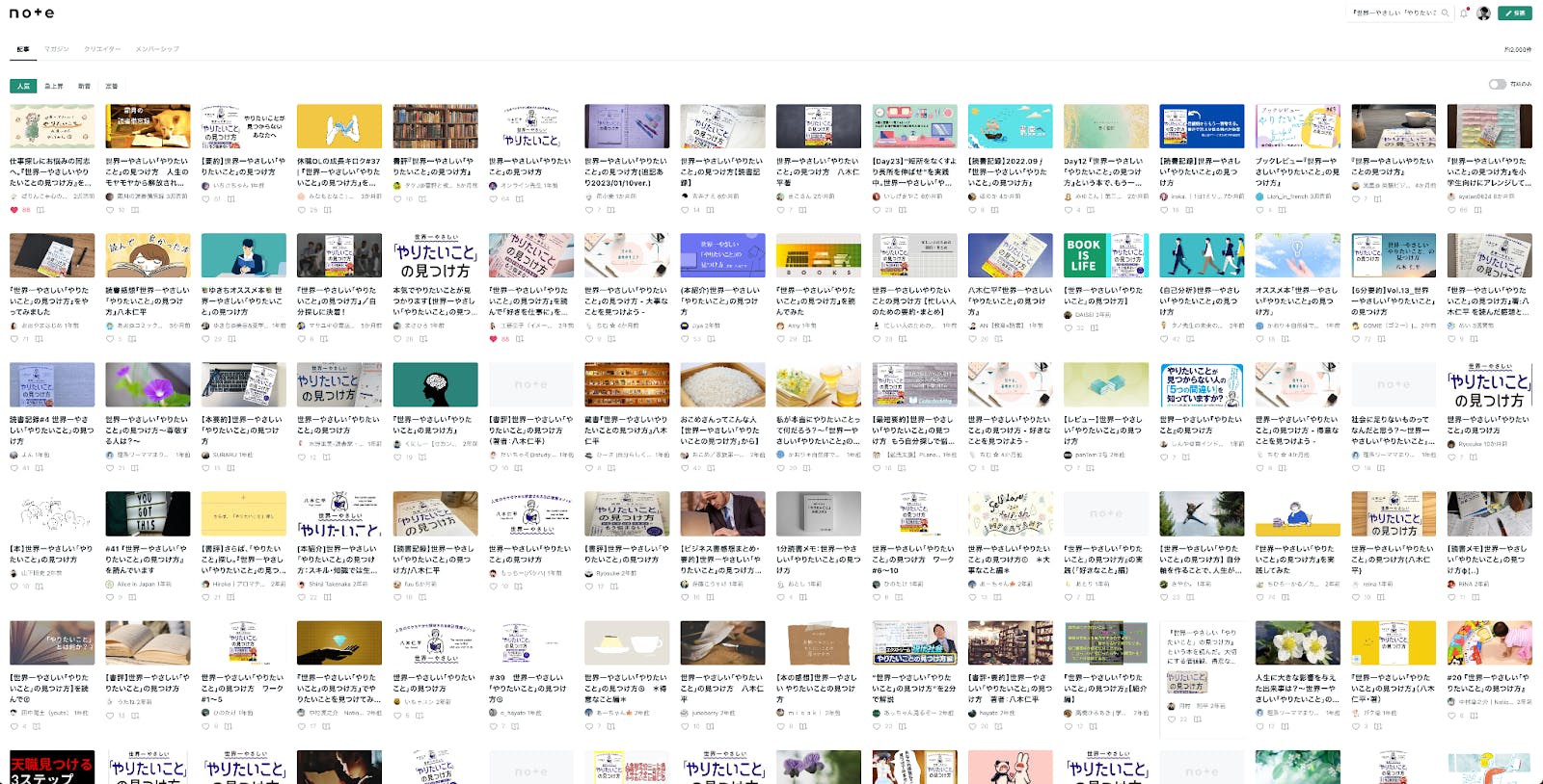 < 書籍の感想をアップしているnoteの記事の数々の一部>