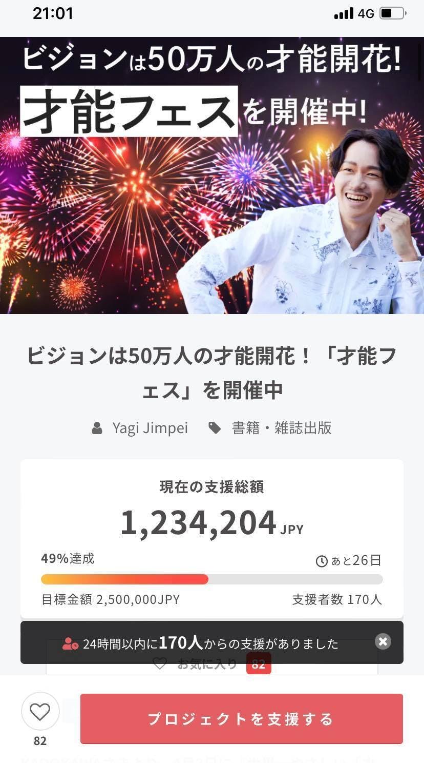2023/03/06 18:56お待たせしました!「才能フェス」で即完売していた3つのリターンを補充しました!・直筆サイン本・八木仁平のバイブル本10冊セット・オンライン講演会はやくも支援金額400万を突破し、すごいことになっています。3月8日には新リターン7つも公開予定!ぜひこのお祭りを一緒に楽しみましょう! もっと見る「才能フェス」をご覧になった皆さま & これからご覧になる皆さまへ