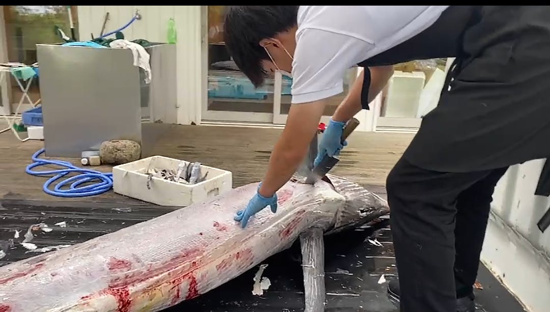 ブロックを購入後、柵という状態(お店でよく見るレンガのような形)に切り分けてから刺身などの切り身にカットする必要があります。柵取りの経験が私にはないため、お店で教えていただくために1ブロックはお店で柵どりをします(柵取りしたマグロは全てリターンに使われます)。もう1ブロックは自分で柵どりをし、その様子を私のInstagramにてライブ配信する予定です。