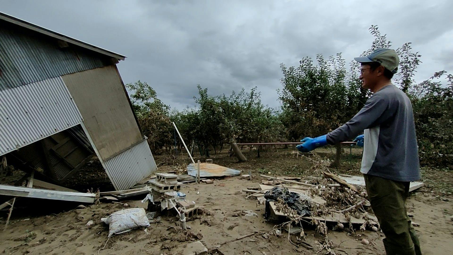 水害に対する保険に入っていなかったため、収入はもちろんのこと、流れていった資材と小屋も全額赤字となる状況の中、経営継続のために全て再度購入し再開している困難に直面しています。