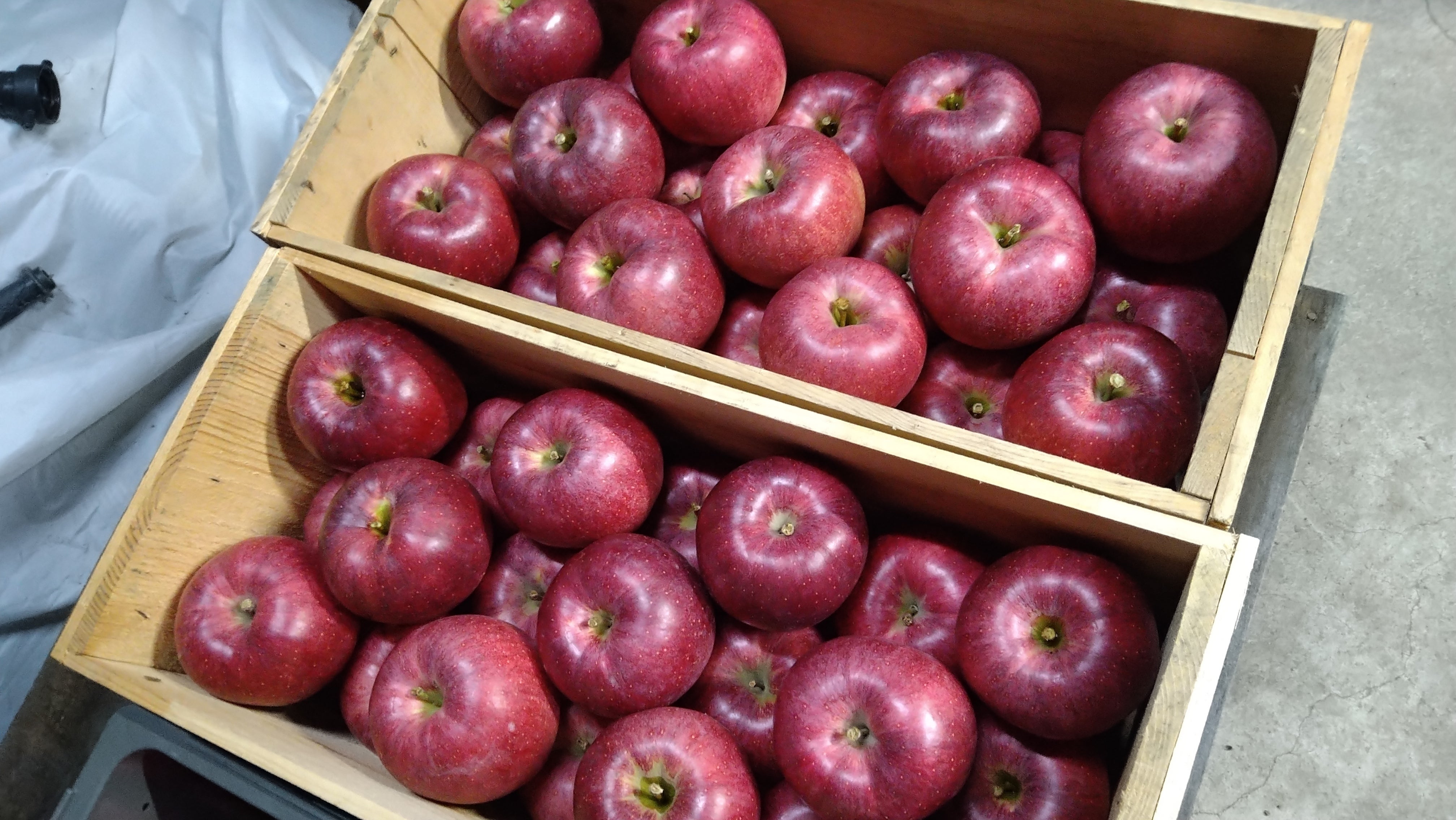大紅栄の収穫。木箱に32個しかはいらない特大玉です。普通サイズのりんごは木箱に72個ぐらい入ります。