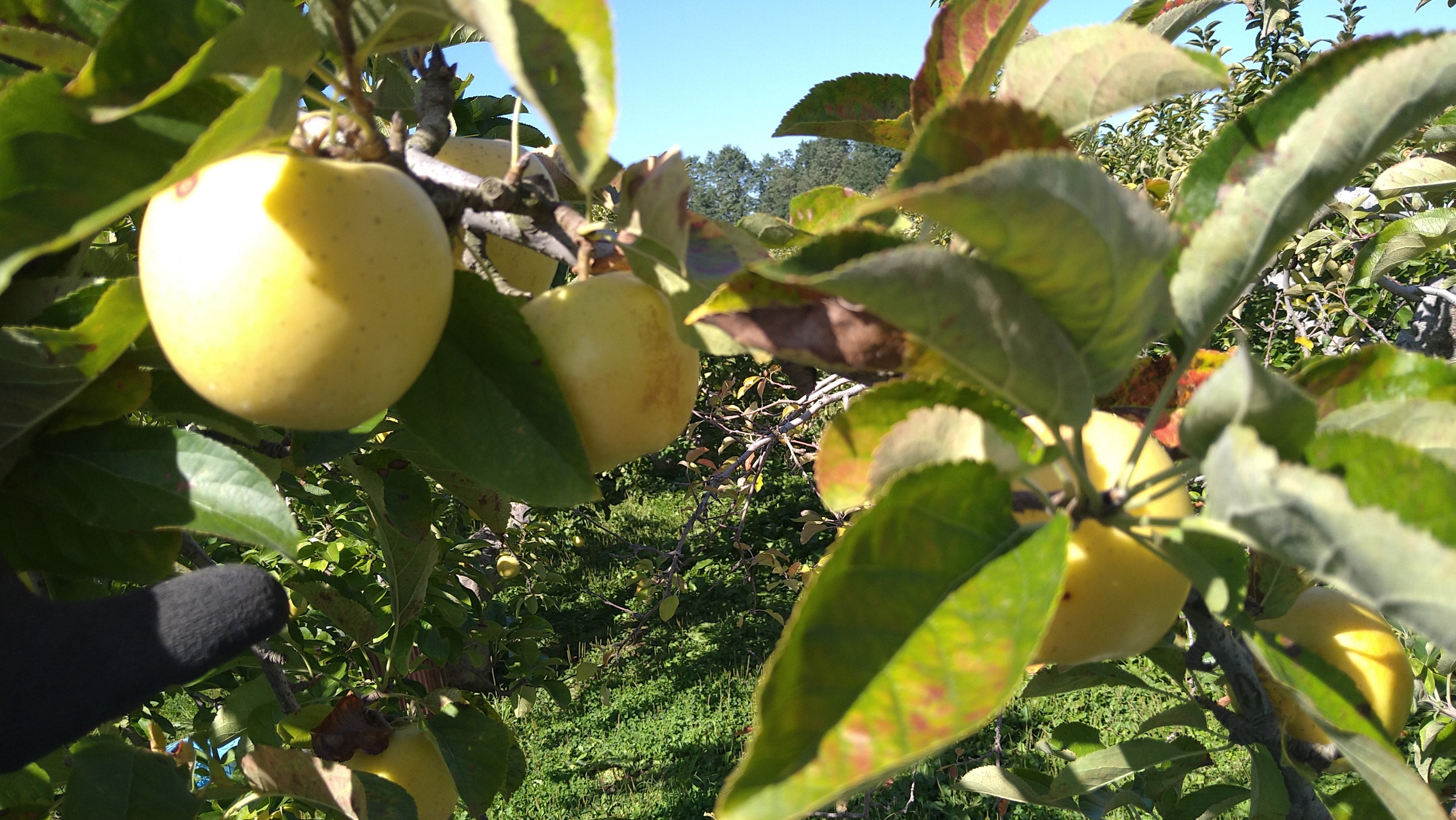 中生種、シナノゴールドの収穫。昨年の水害被害の影響で極小サイズにしかならず残念です。来年は良いリンゴが採れる事を願います。