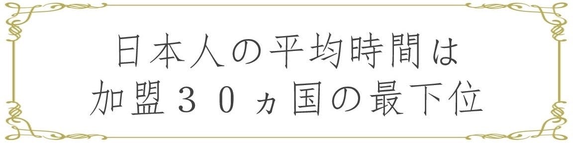 経済協力開発機構(OECD)が 2021年に発表したデータでは、日本人の平均時間は7時間22分で加盟30ヵ国の最下位。平均より、1時間も少ないのです。