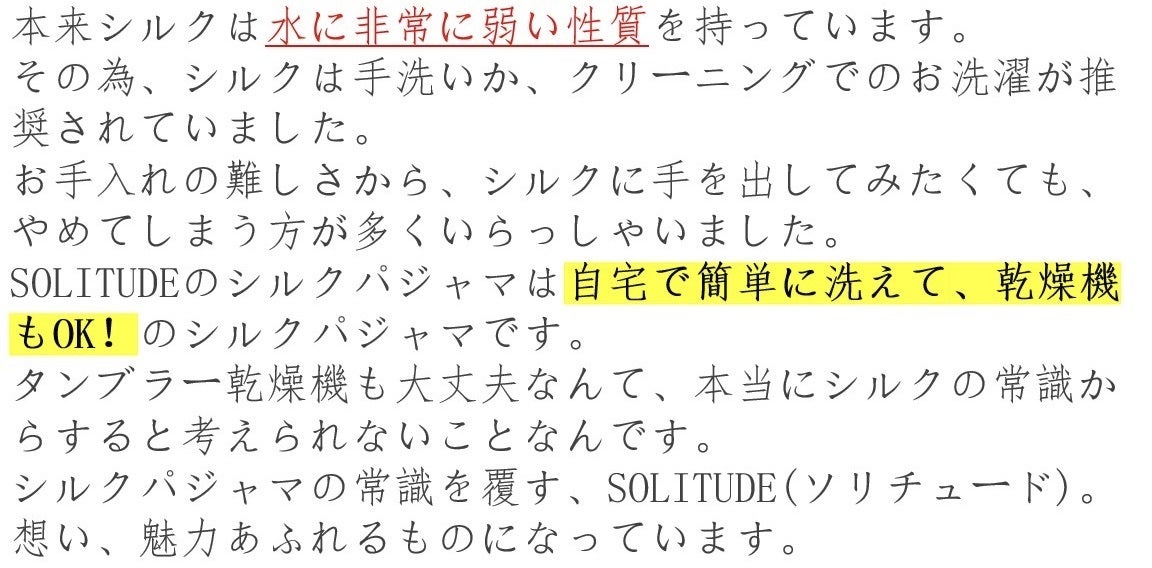 どうしてSOLITUDE(ソリチュード)のシルクパジャマは洗濯可能なのか。