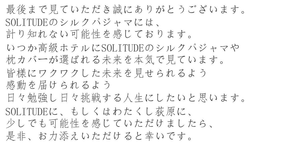 SOLITUDEは本当に色んな方の熱い思いが集まった、超高級シルクパジャマなのです。