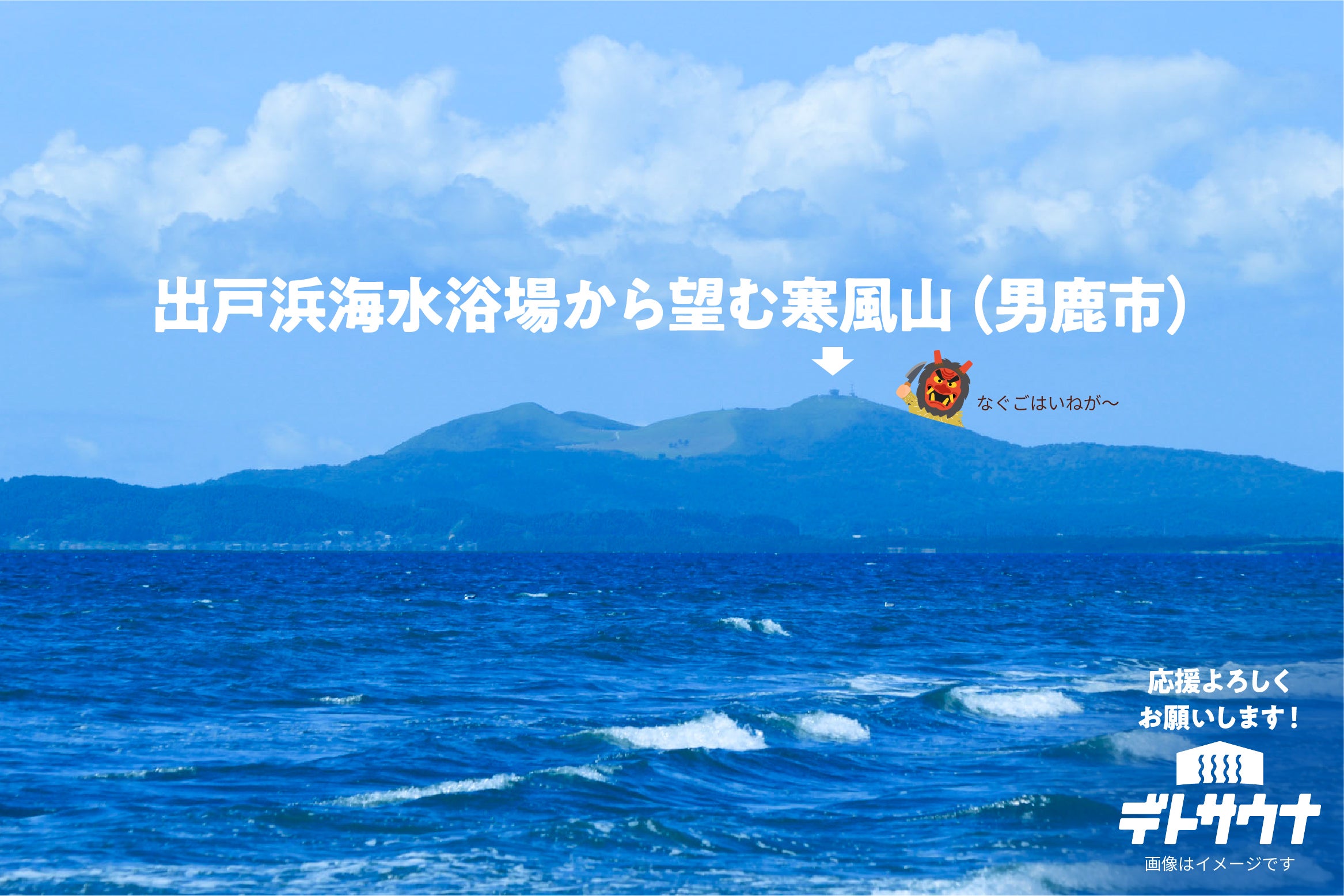 出戸浜の魅力はなんといっても雄大な海。デトサウナからは四季折々の日本海と男鹿半島を望むことができます。私個人の意見ですが、出戸浜からの夕日はハワイよりもキレイだと思っています。秋田の方ならきっと共感してくれるはずです。海に夕日が沈む瞬間、大概のことはたいしたことないと思えるほど心が洗われます。