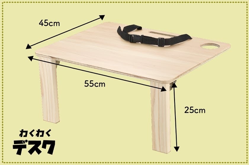 幅55㎝、奥行45㎝の机に、シートから机までの距離に該当する脚が25㎝の机です。