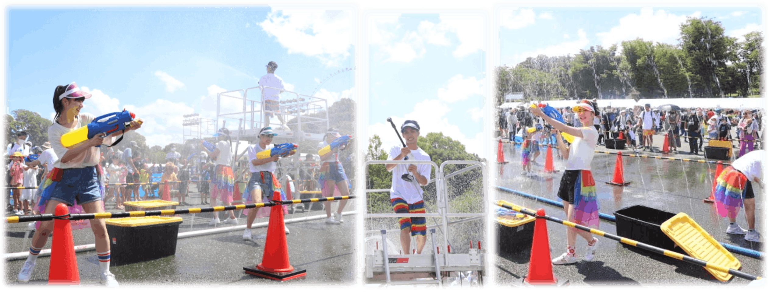 2台の消防車から大噴射!総水量30トン超え!スーパーびしょ濡れ水かけ祭り”すいたスプラッシュパーティ”!!