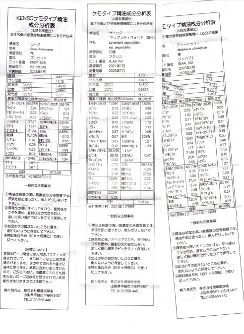 プラナロム精油は、プラナロム社の正規日本輸入代理店が厚生労働大臣登録検査機関による国内再分析の結果を、生産ロット毎に自主的に全ての精油に添付し、開示しています。