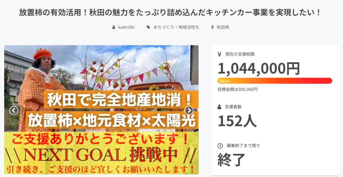 2026/03/15 21:58いつも温かいご支援をいただき、心より感謝申し上げます。 カッキーです。改めまして、第一弾・第二弾プロジェクトにご協力くださった皆様、本当にありがとうございました!!さて、このたび皆様のご支援で実現したクマ対策活動をさらに拡大するため、第三弾クラウドファンディングを本日より開始いたしました!加工場と店舗を設けることで、柿の処理能力を高め、クマ対策の取り組みを加速させることを目指しています。【 第三弾プロジェクトページはコチラ】今回も皆様からご支援をいただけますと、これ以上の励みにはなりません。何卒よろしくお願い申し上げます。柿木 もっと見る
