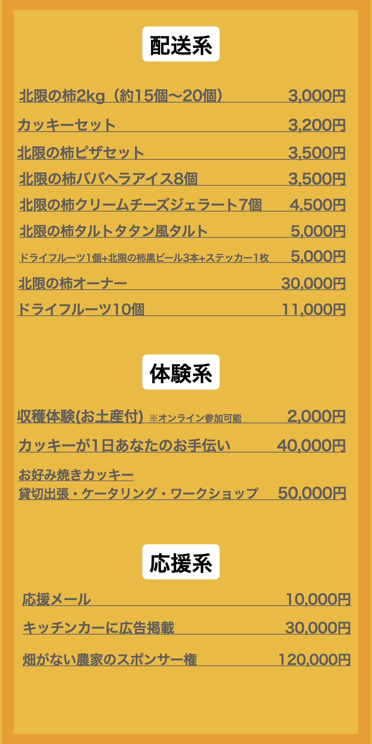 収穫した柿の、買い取り or 柿の限定加工品と交換。