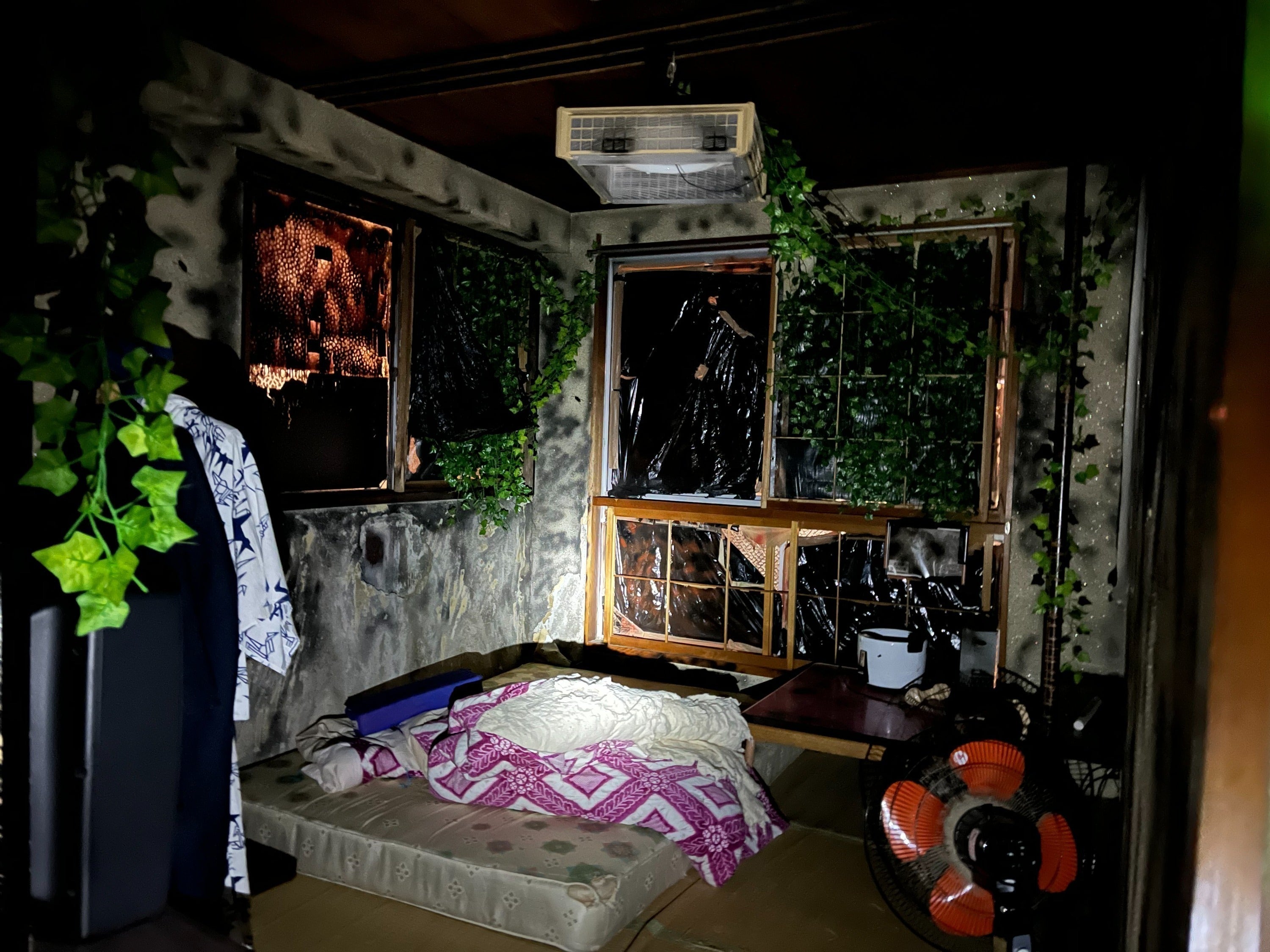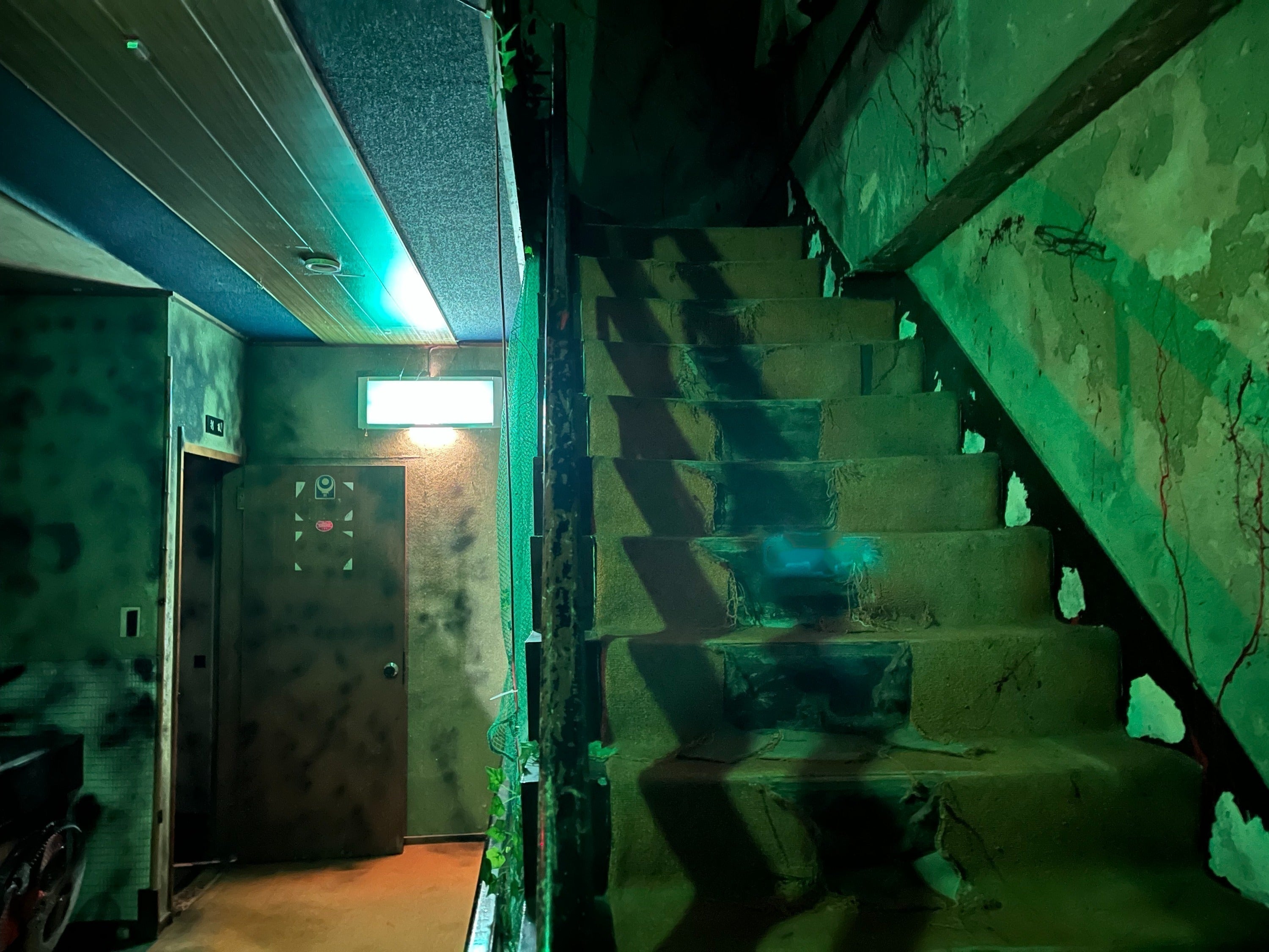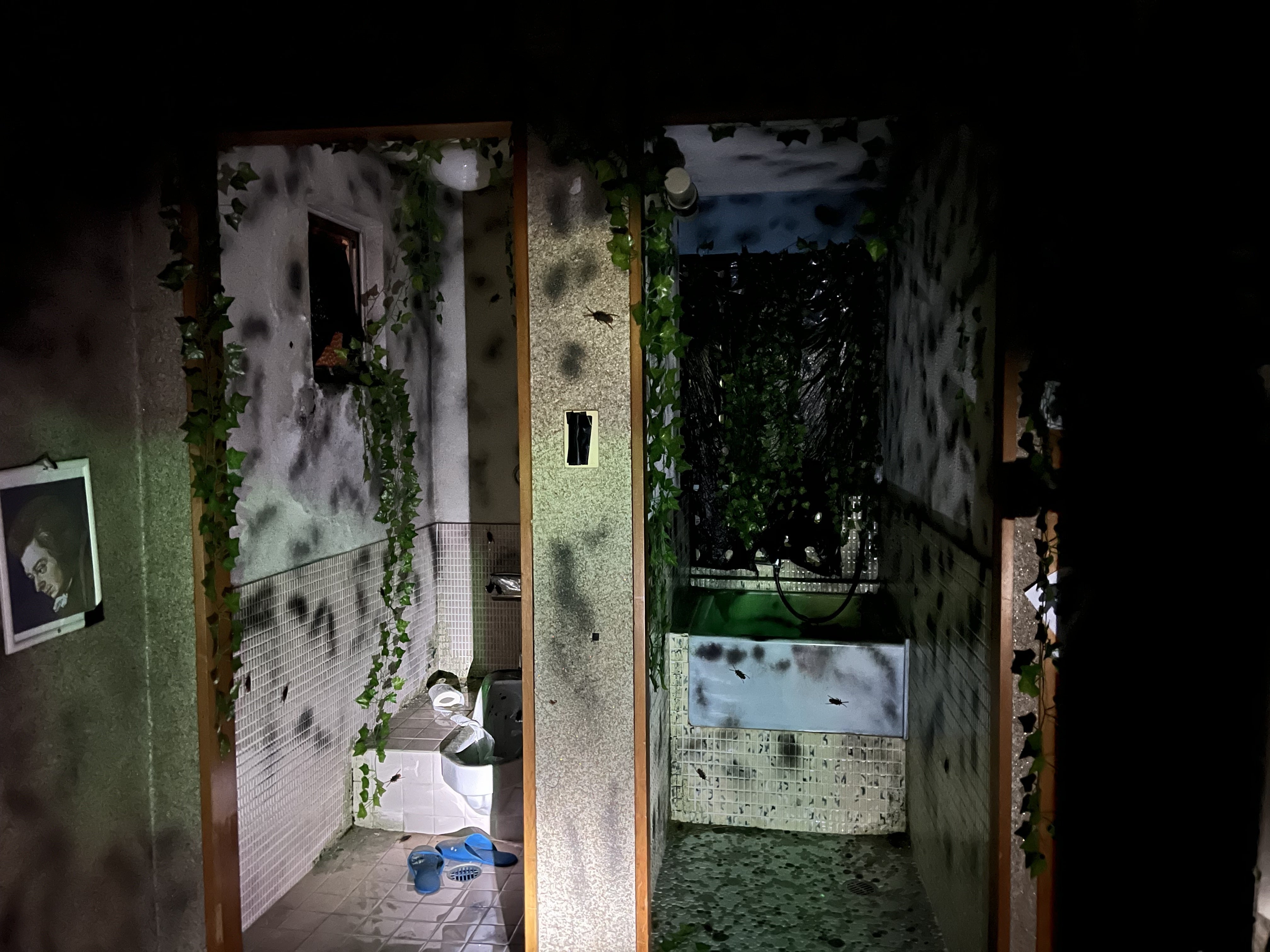 もう一つの理由は②本物の廃墟を探索するという体験は他ではなかなかできない。ということです。OBAオバホテル猟奇館で使っている建物は本物の廃墟です。決して作り物のボロさではありません!!(それが故に、内装工事には苦労しますが)たまにニュースを見ていると、廃墟となった建物に、肝試し感覚で無許可で立ち入り、事件事故に巻き込まれた、という内容を目にします。廃墟探索は面白いかもしれませんが、長年人が立ち入ってない敷地に入るのは危険ですし、法に触れます。でも猟奇館なら本物の廃墟探索が安全にできます。消防設備も動いてますし、毎日人が入って随時メンテナンスしてますし。さらに元ホテルなので、階段があり、客室があり、布団が敷かれていて、トイレやお風呂まであるんです。こんな場所、めったに出会えません。