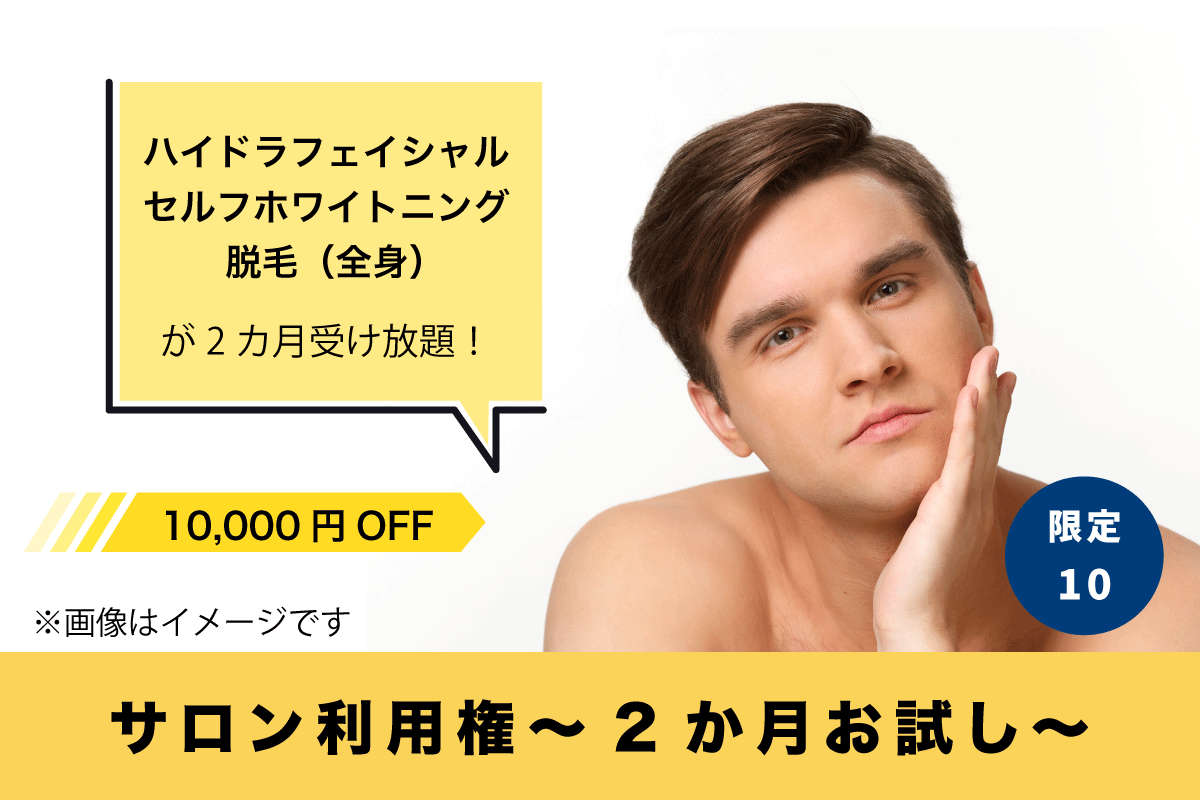 ◆ハイドラフェイシャル・セルフホワイトニング・脱毛(ひげ):15,000円/月