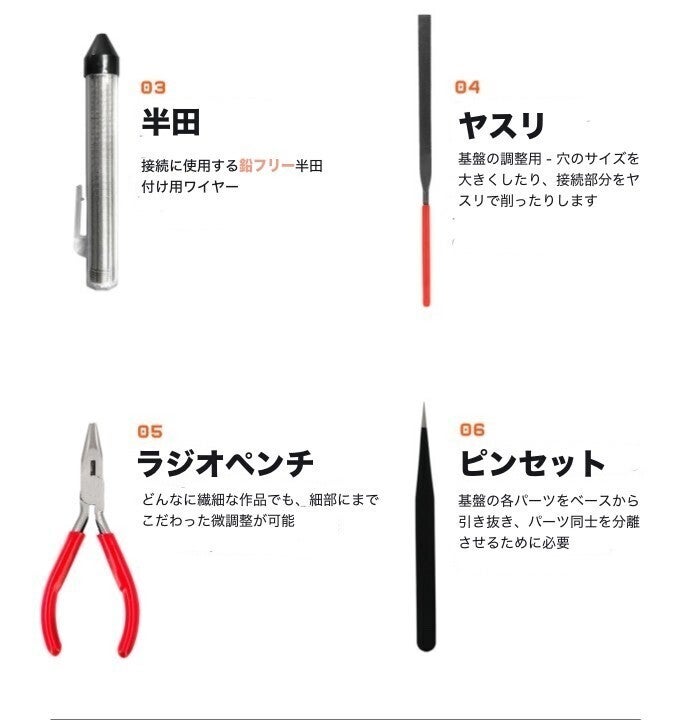 各キットには、完全に作られた回路基板パーツ、