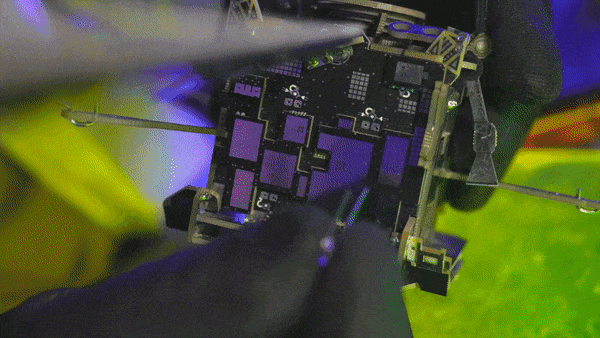 プリント基板をあらかじめ設計された部品に分解し、ペンチで小さな部品同士を分割する。
