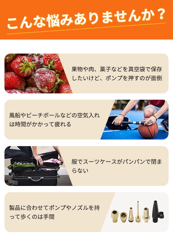 風船やサッカーボールなどの空気入れもすばやく完了。