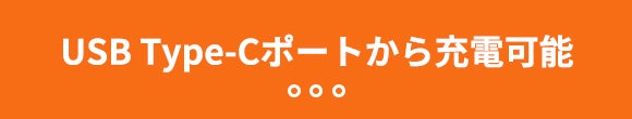 USB Type-Cポート搭載ですので、モバイルバッテリーなどから充電可能です。約2時間でフル充電できます。