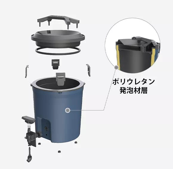 内部のポリウレタン発泡材の断熱層と通気口が付いた密封蓋で、高い保冷作用を実現しました。保冷期間はなんと最長2日以上です。