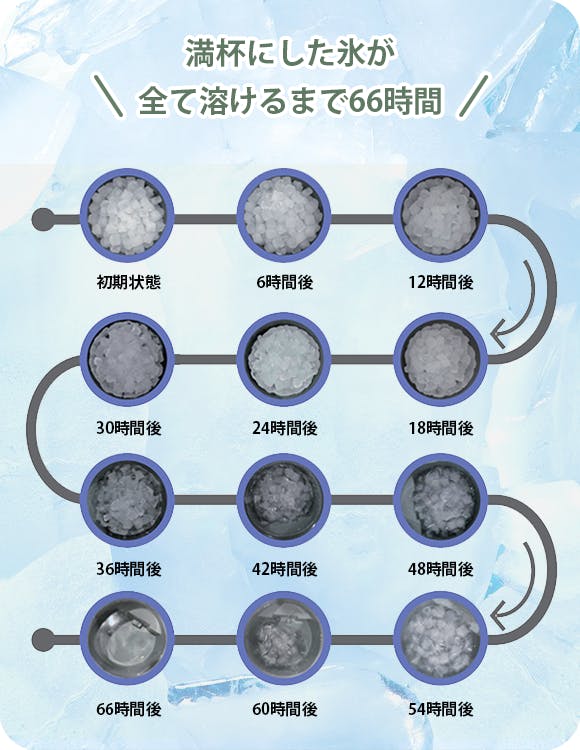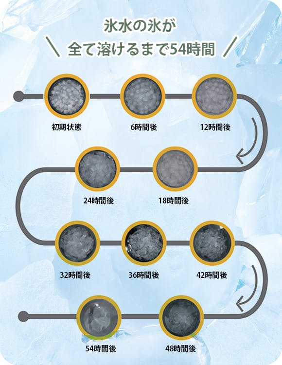 外部の気温はアイスバケツ内部の断熱効果に影響します。以下は、日本の夏を想定した気温32℃の環境で行った保冷効果の実験結果です。